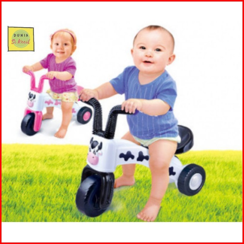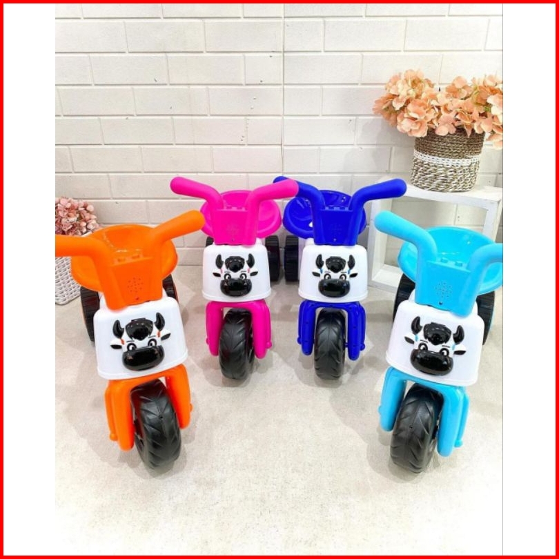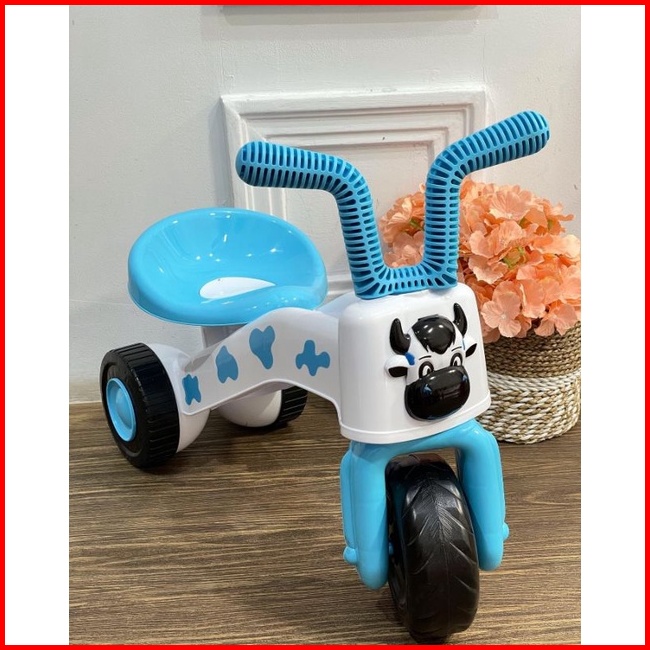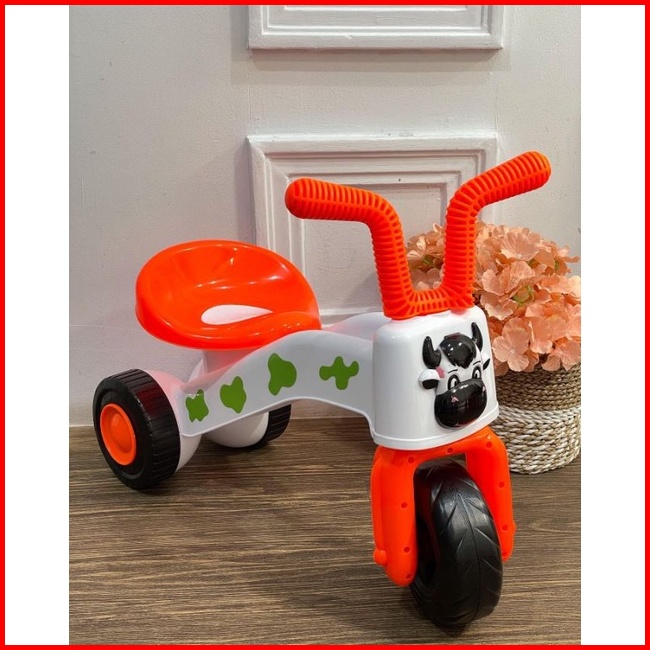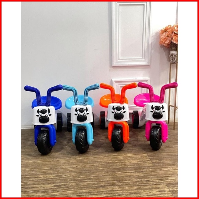 Sepeda Anak Roda 3 Musik Led Tricycle Happy Cow Balance Push Bike Plastik Mainan Tunggang Bisa Dinaiki