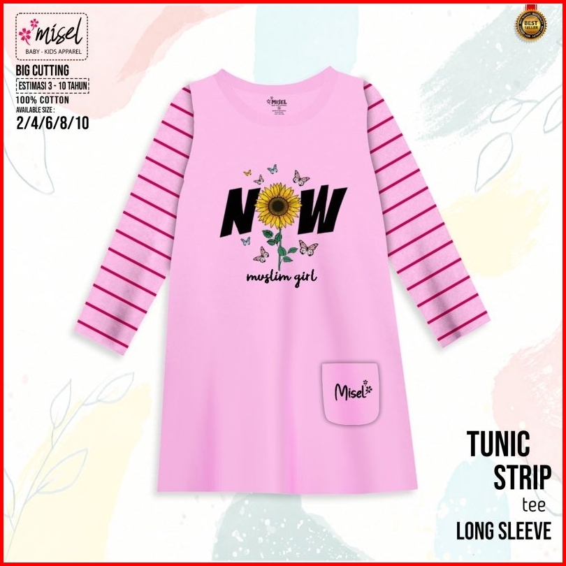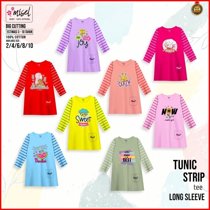 Kaos Tunik Anak Perempuan Lengan Panjang Usia 3-10 Tahun