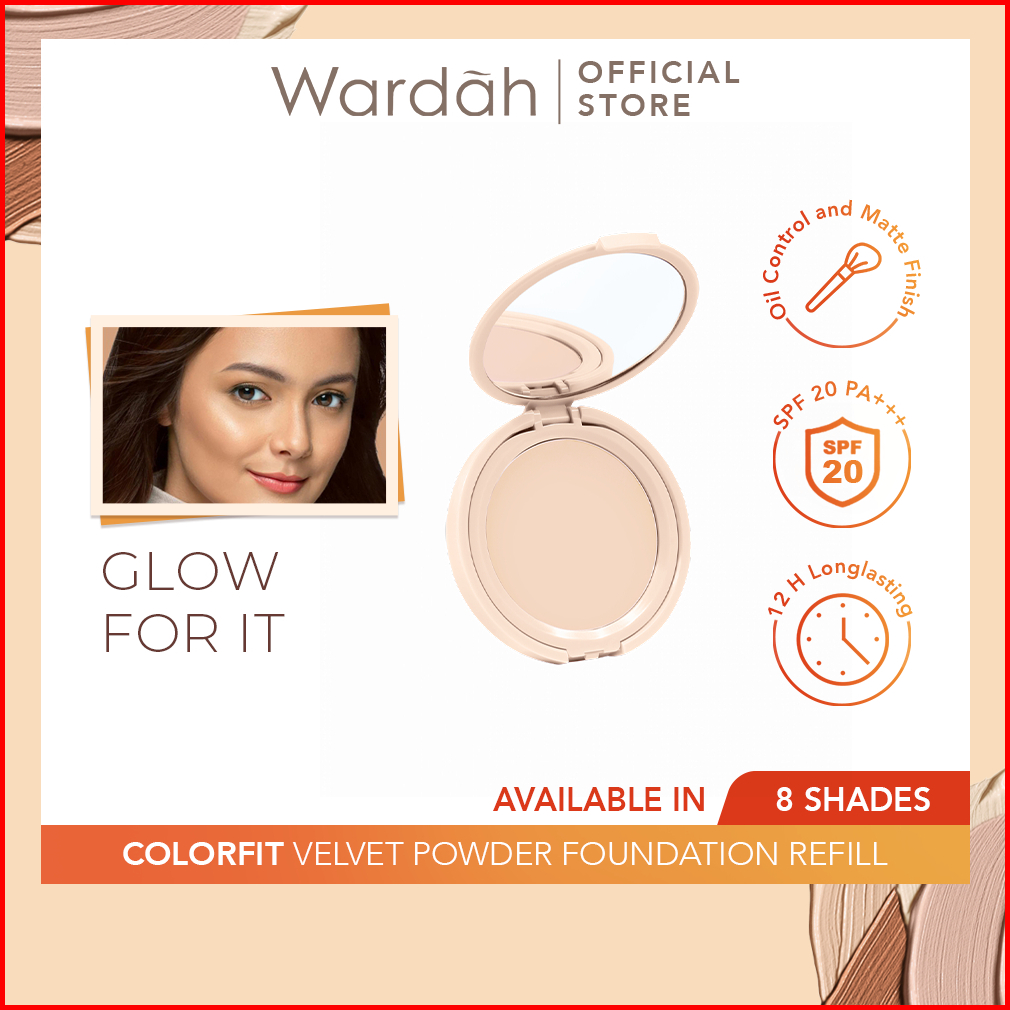 Wardah Colorfit Velvet Powder Foundation Refill - Bedak Padat Dengan Spf 20 - Oil Control - Tahan Lama Hingga 12 Jam - H
