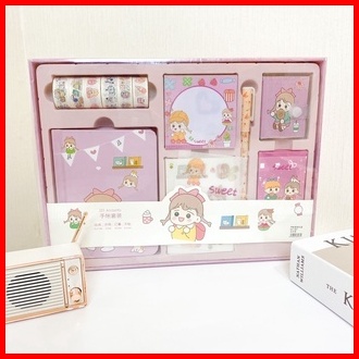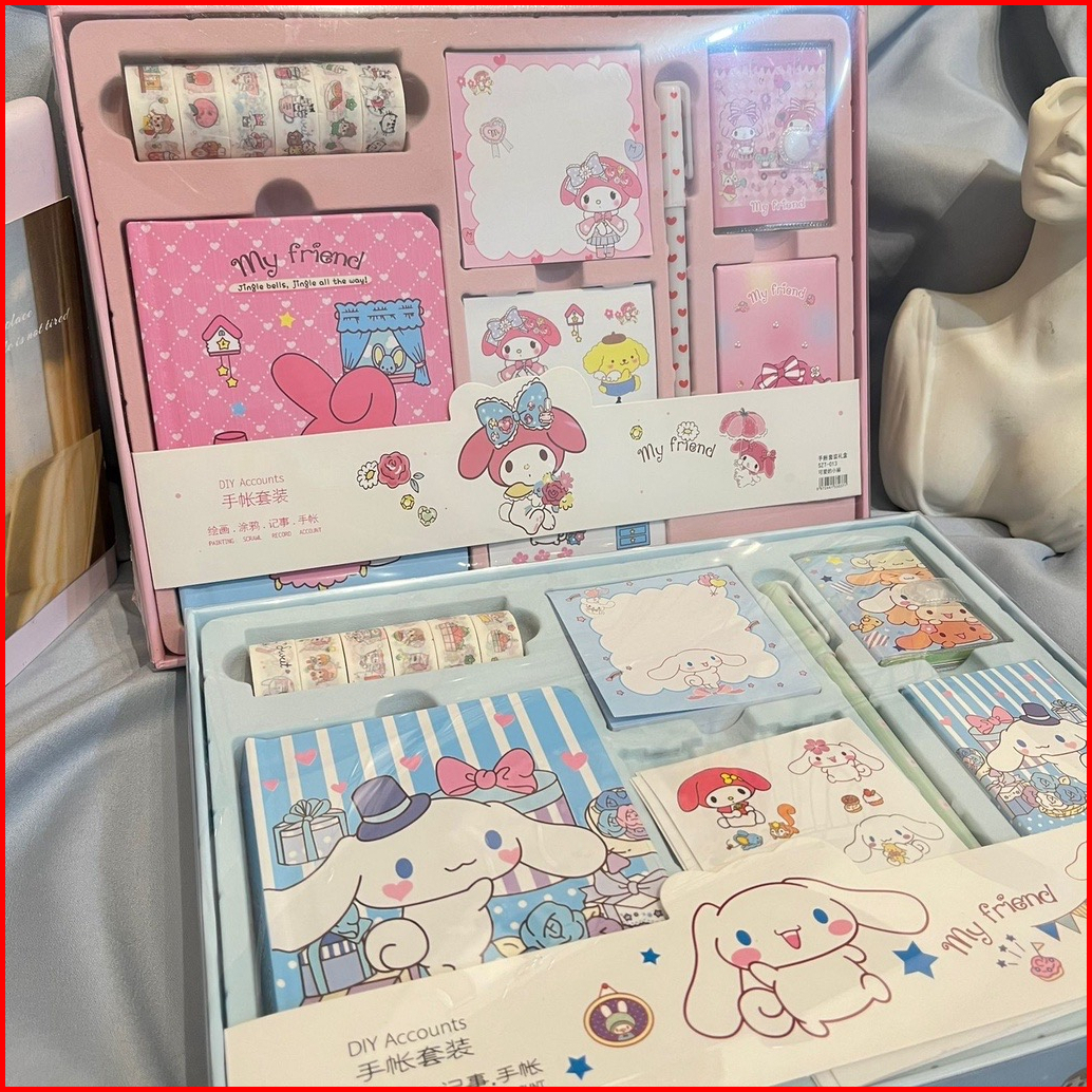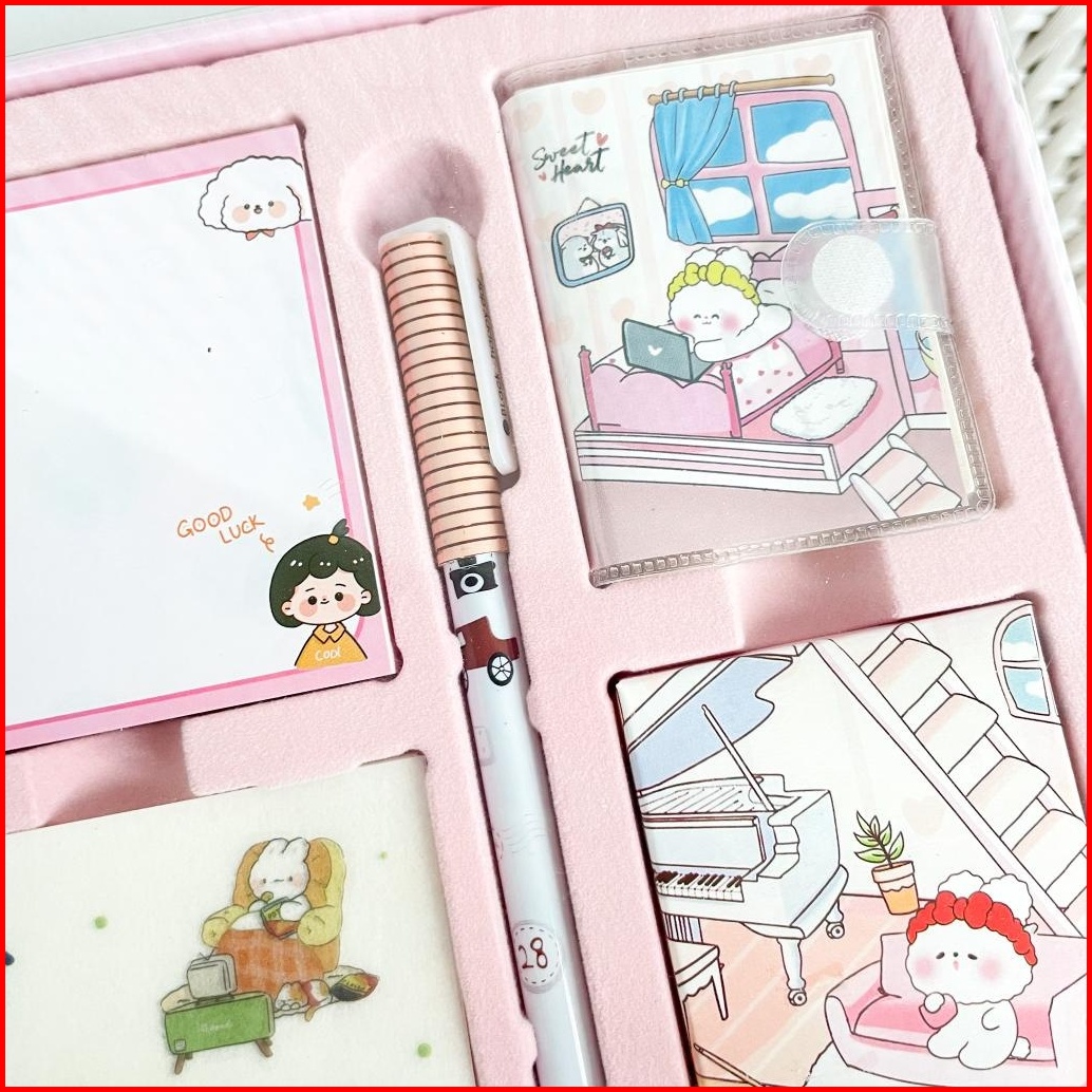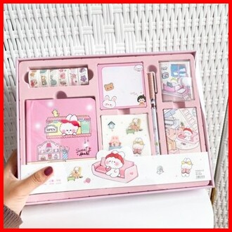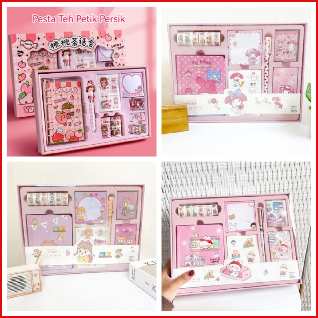 Paket Jurnal Set Gift Box Hampers Anak Hadiah Notebook Journal Diary 6 In 1 Boba Alat Buku Tulis Lengkap Scrapbook Cute