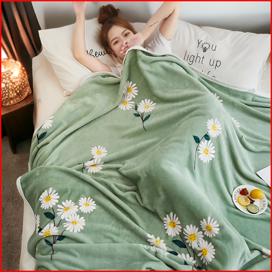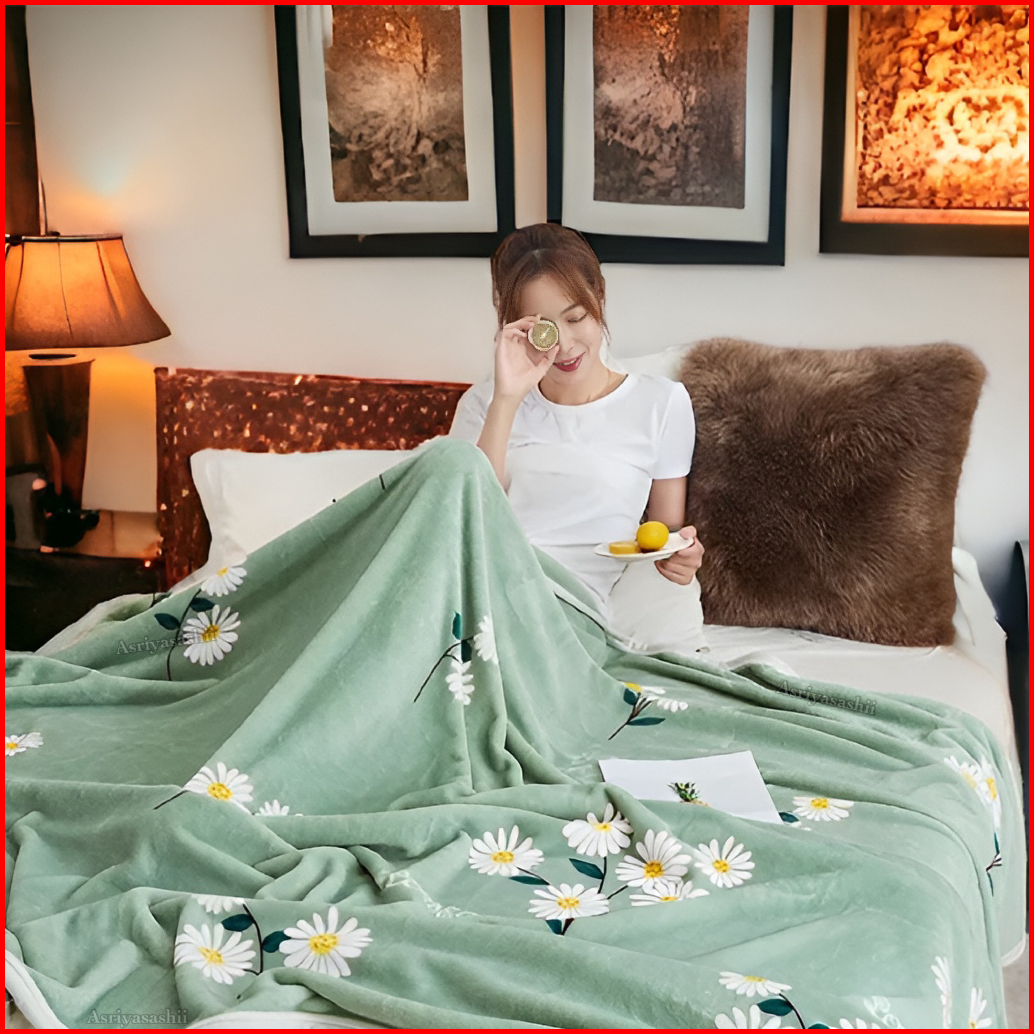 Selimut Dewasa Bulu Halus Ukuran King 180x200 Motif Kembang Cantik Terlaris Murah Asriyasashii Berkualitas
