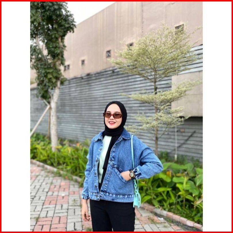Jaket Denim Jeans Oversize Vintage Wanita Jacket Jins Oversize Kekinian Jaket Vintage Lengan Balon Crop Jeans Cewek Terb