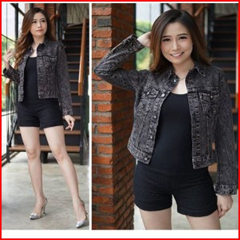 Jaket Wanita Jaket Jeans Snow Black Cropty Murah Terlaris - Colombusana