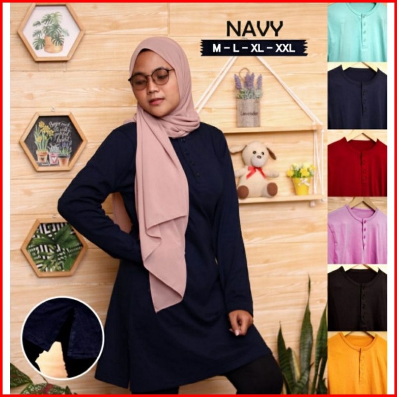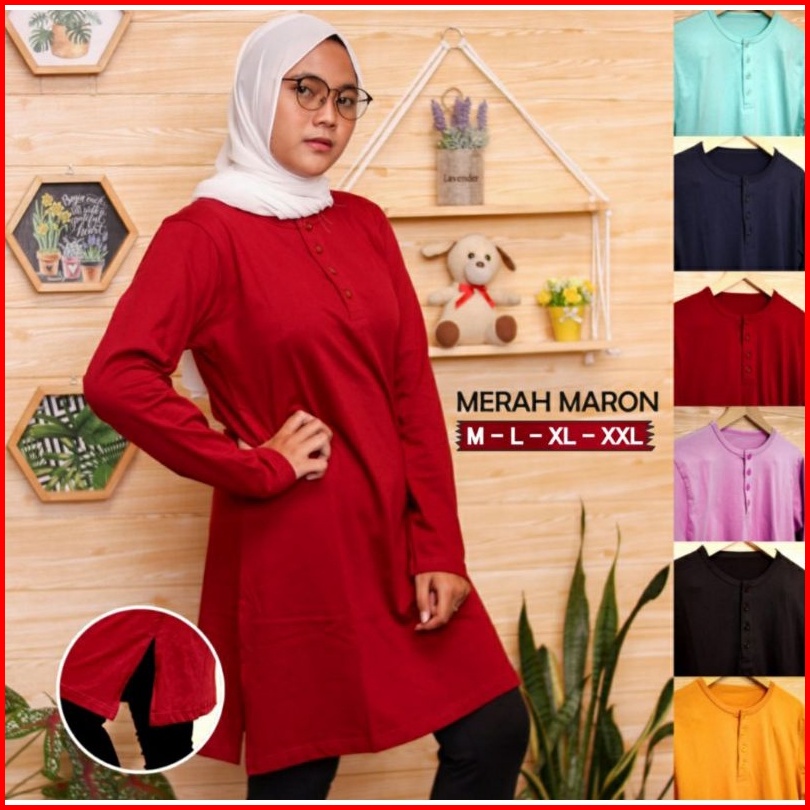 Kaos Tunik Muslim Berkancing Premium Cotton Combed 24s