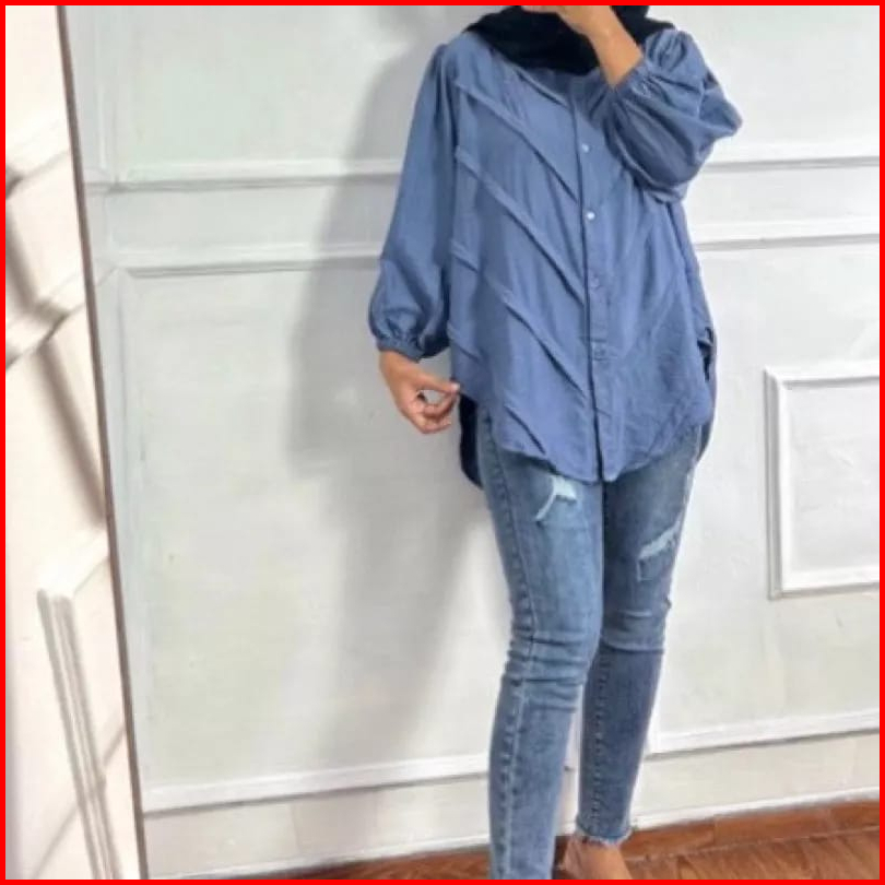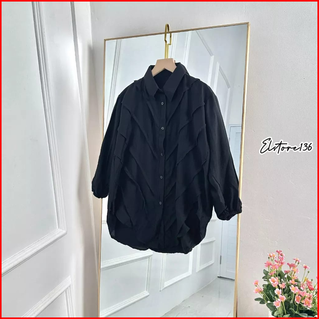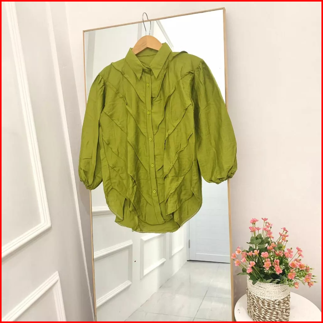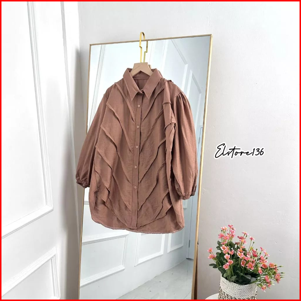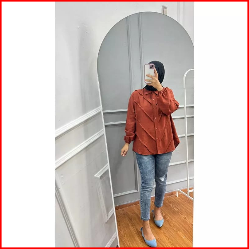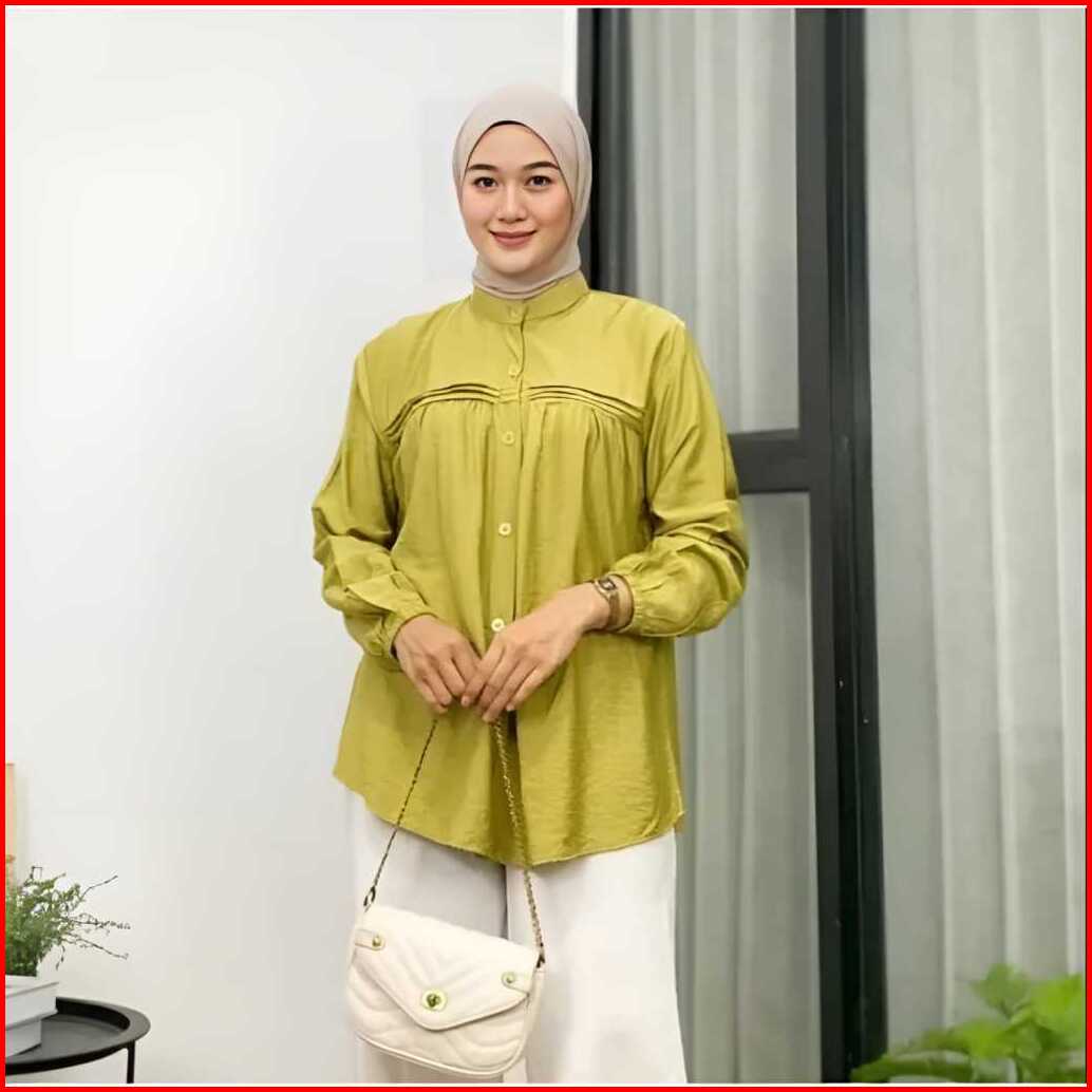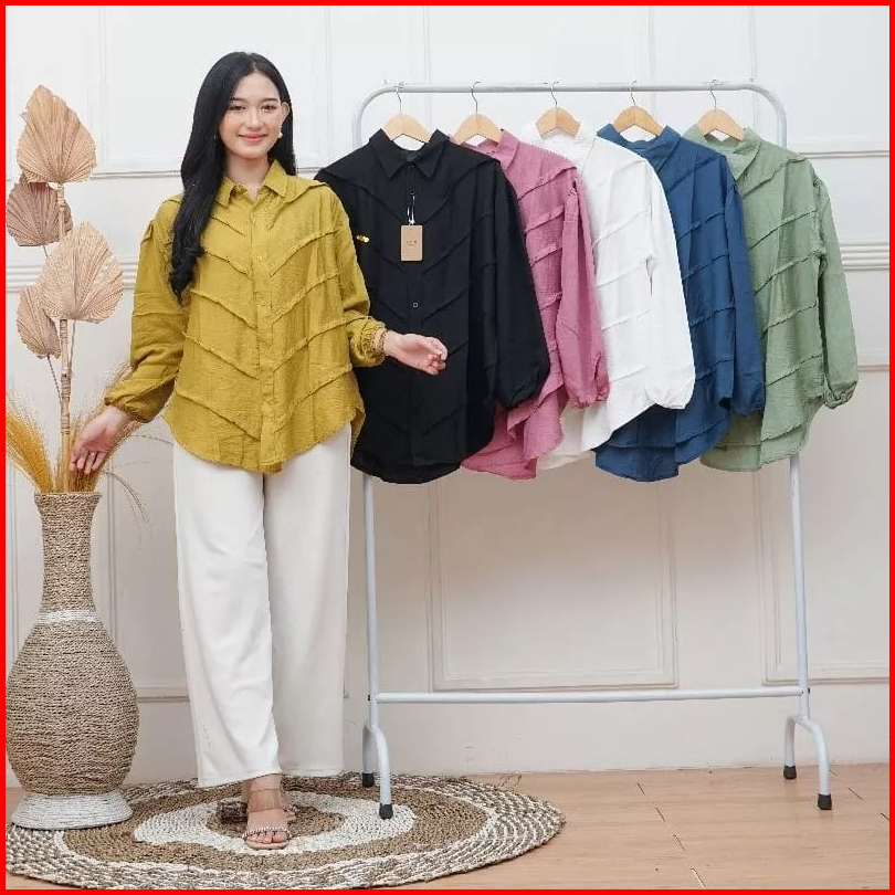 Blouse Atasan Wanita Lengan Panjang Full Kancing Rempel Bahan Polo Linen All Size Ld 110 Cm Terlaris Alexa Mode