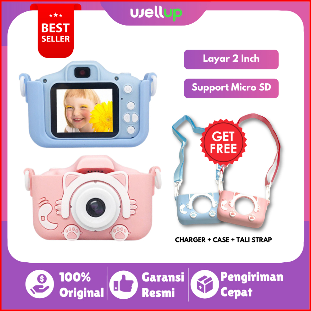 Wellup Kamera Anak Mini Digital Camera Kids Mainan Edukasi Charging Usb Cable Battery 1000 Mah
