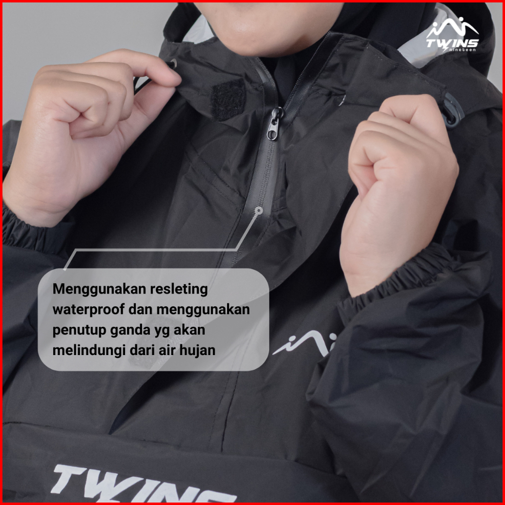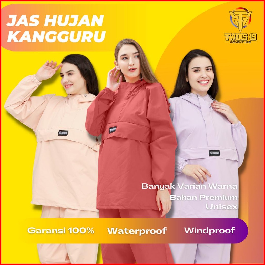 Jas Hujan Twins19 Jas Hujan Saku Kangguru Pria Wanita Dewasa Anti Air Bahan Taslan Import Raincoat