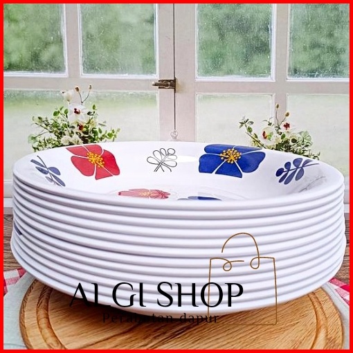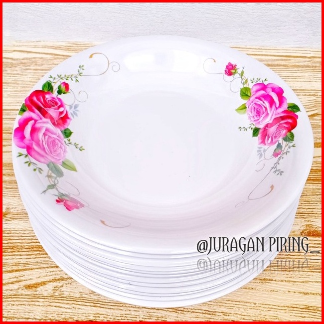 Promo Turun Harga 12pcs Piring Melamin Motif Kembang Asli Singa Singi Diameter 23cm Tahan Panas