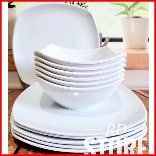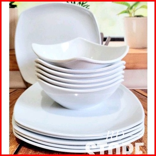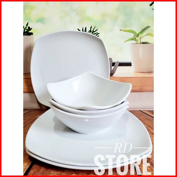 Promo 12.pcs Isi 6.piring Mangkok Melamine Polos