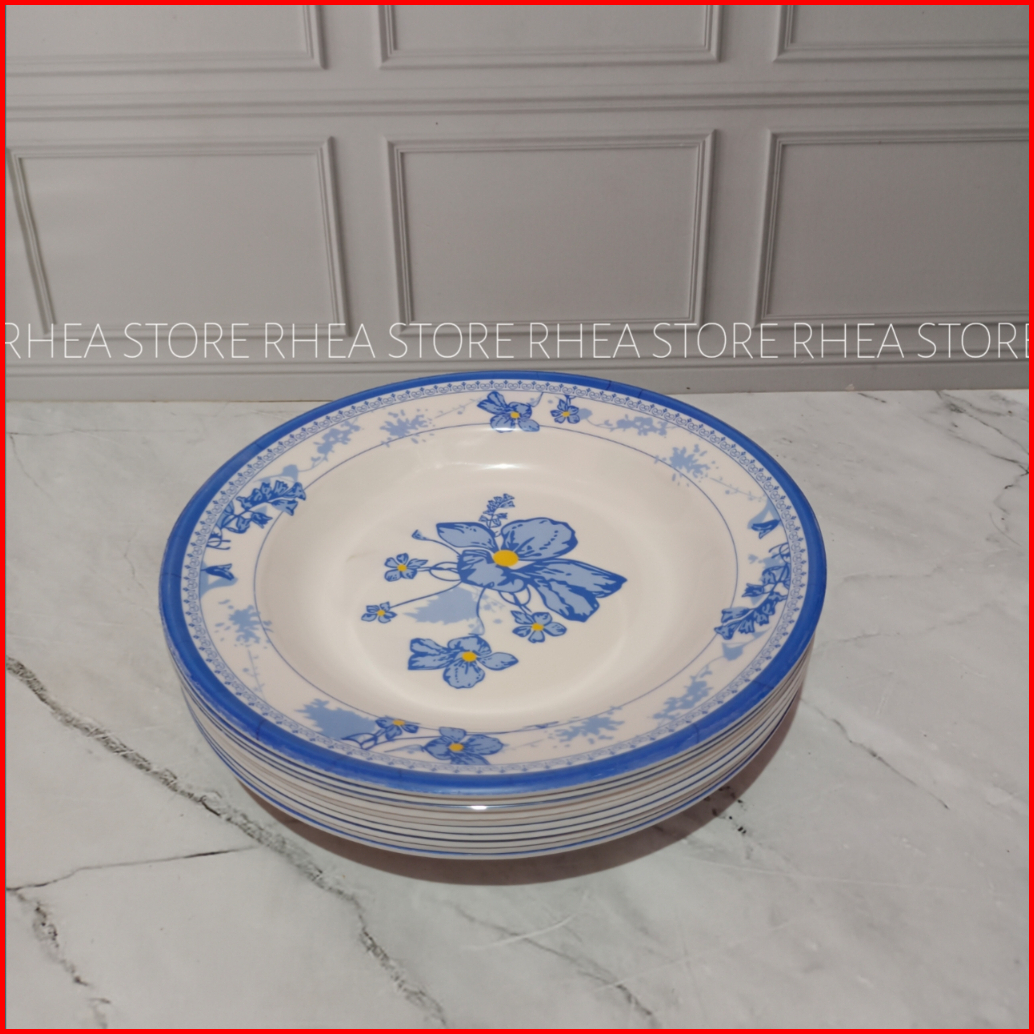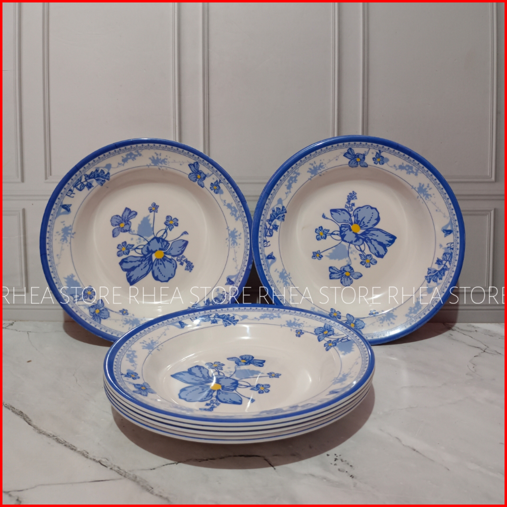 12 Pcs Piring Makan Motif Bunga Piring Melamin Motif