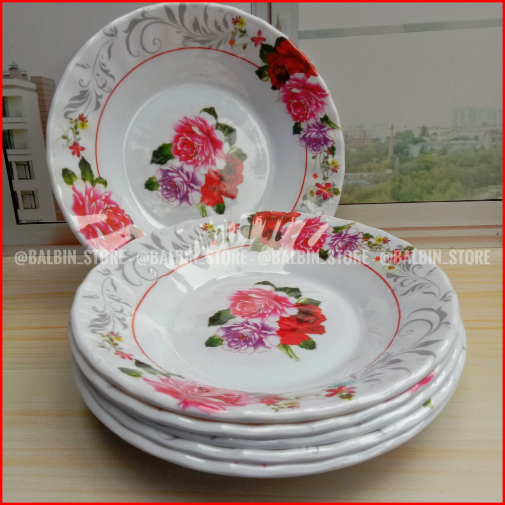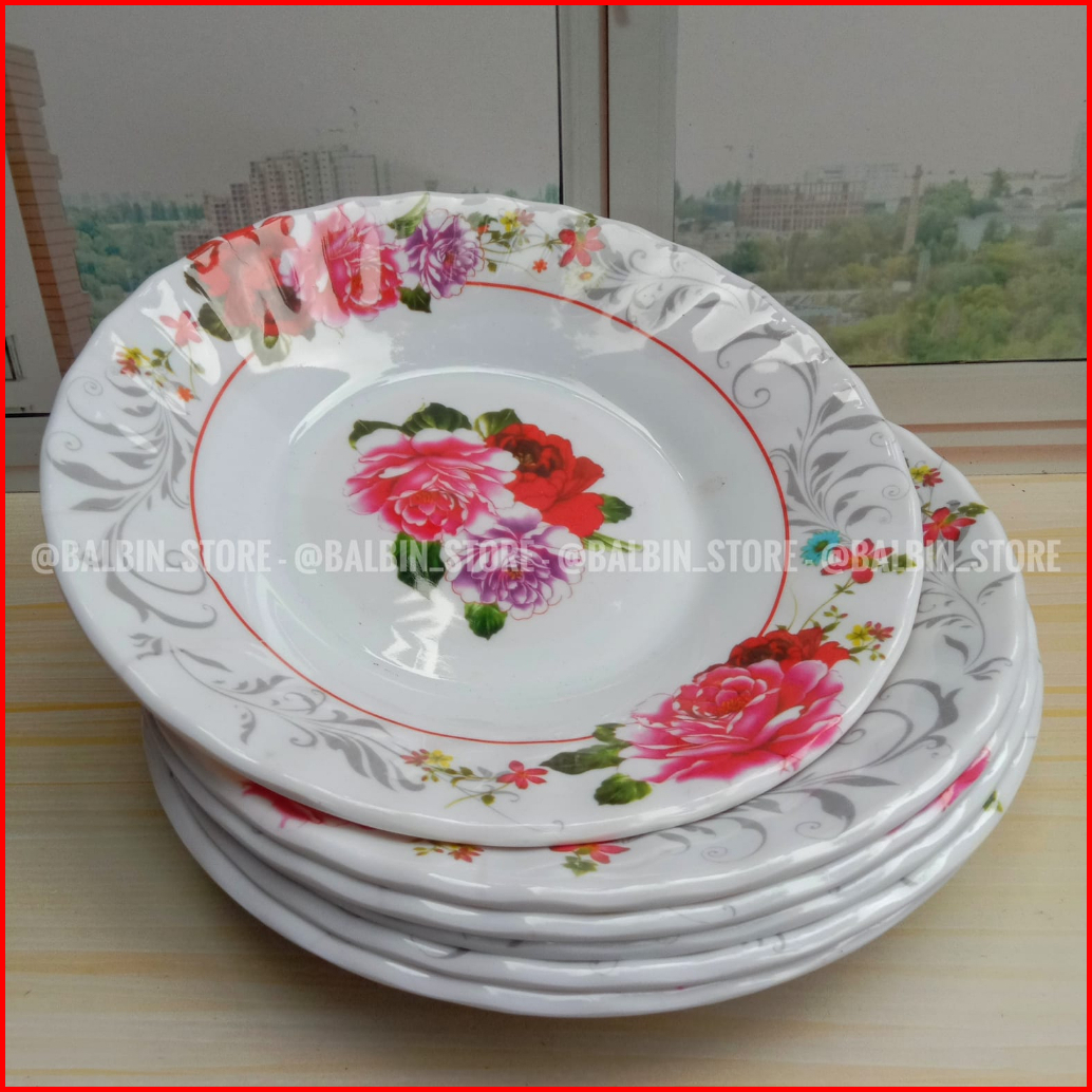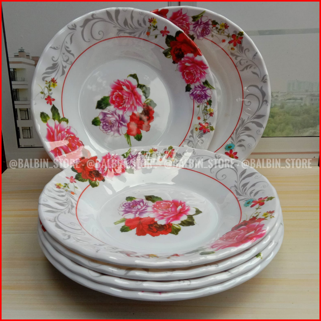 Satu Lusin Piring Makan Melamin Lebar 23.cm Terbaru Motif Mawar Kualitas Asli Food Frade