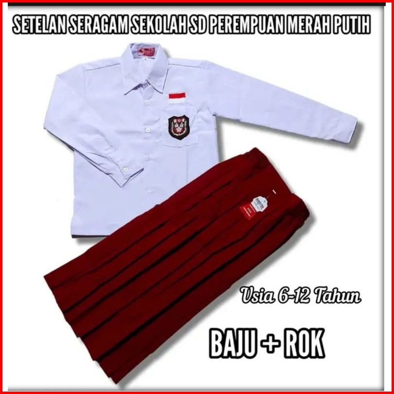 Setelan Merah Putih Non-set Anak Cewe Perempuan Baju Panjang Rok Panjang Seragam Sekolah Sd Kelas 1-6 Sd