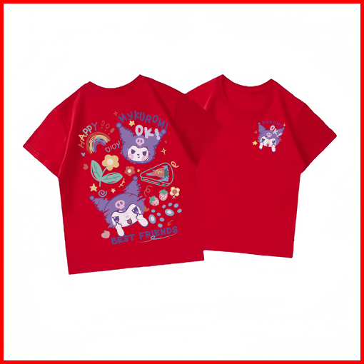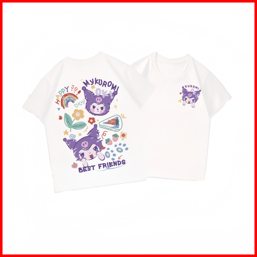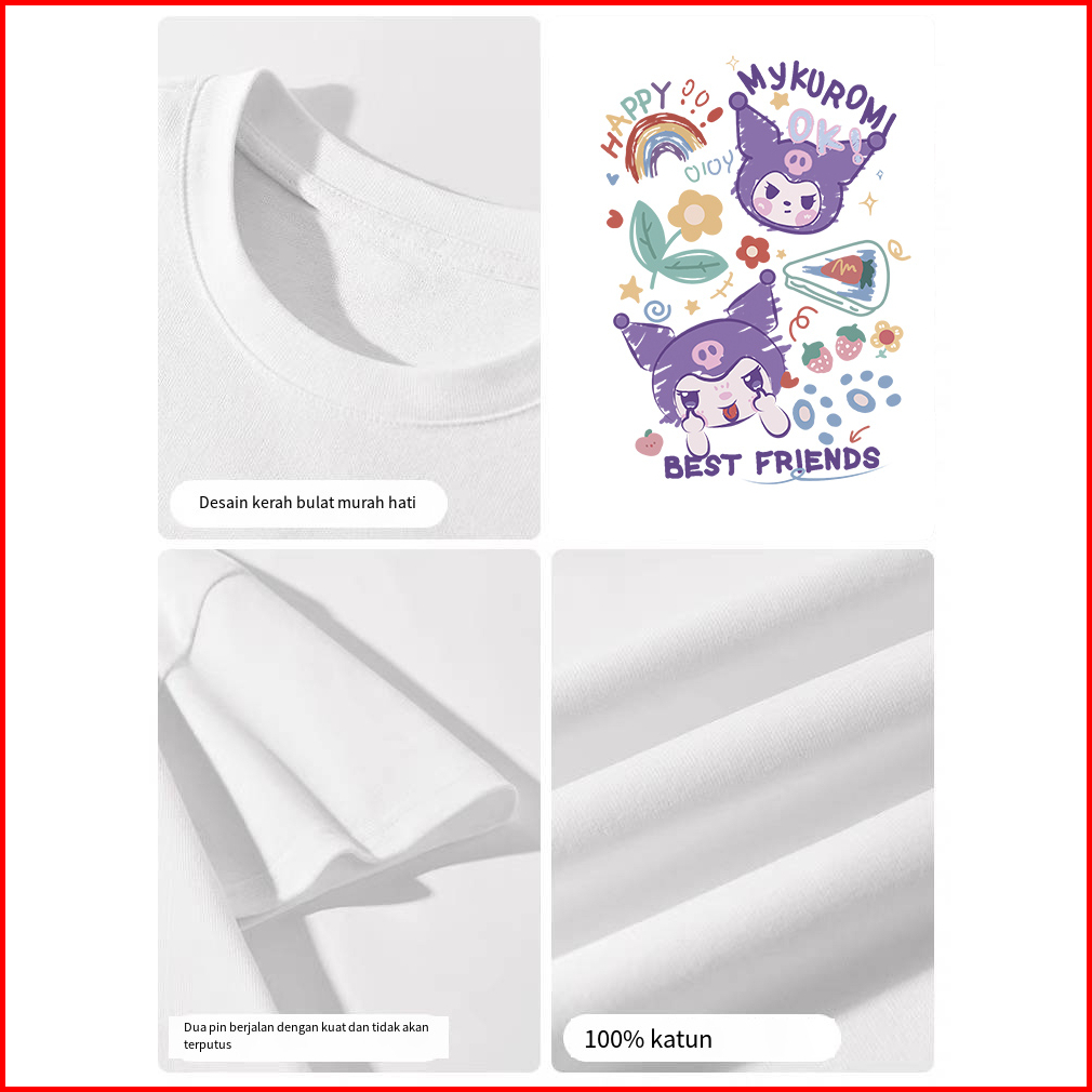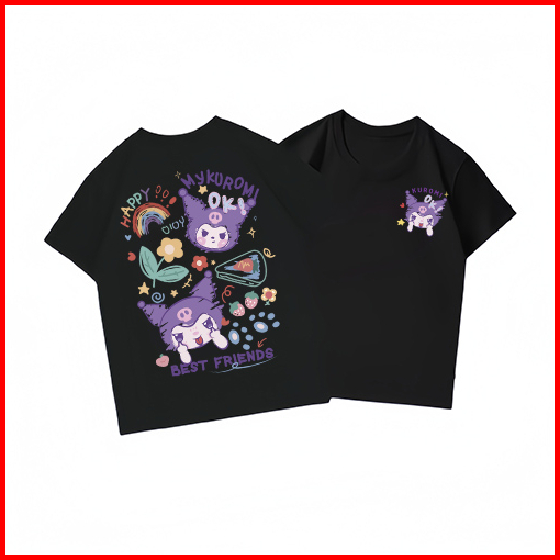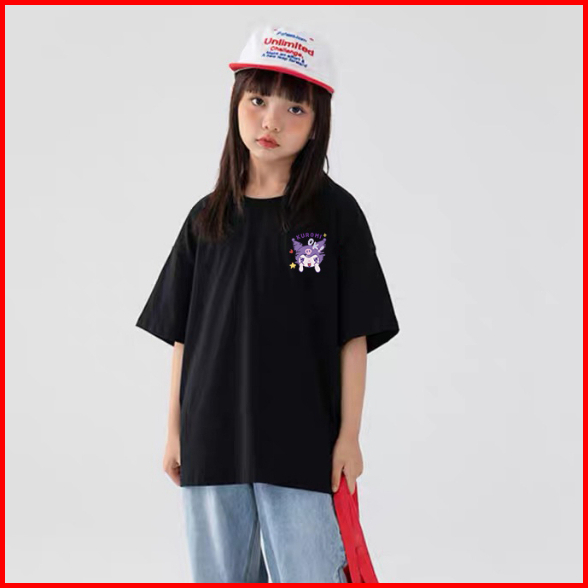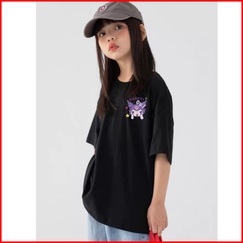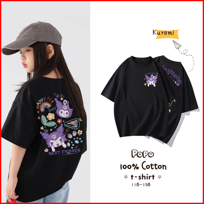 Popo 2025ss Terbaru Import Oversize 100 Cotton Kartun Hitam Kuromi Lucu Baju Atasan Kaos Anak Perempuan Children S T-shi