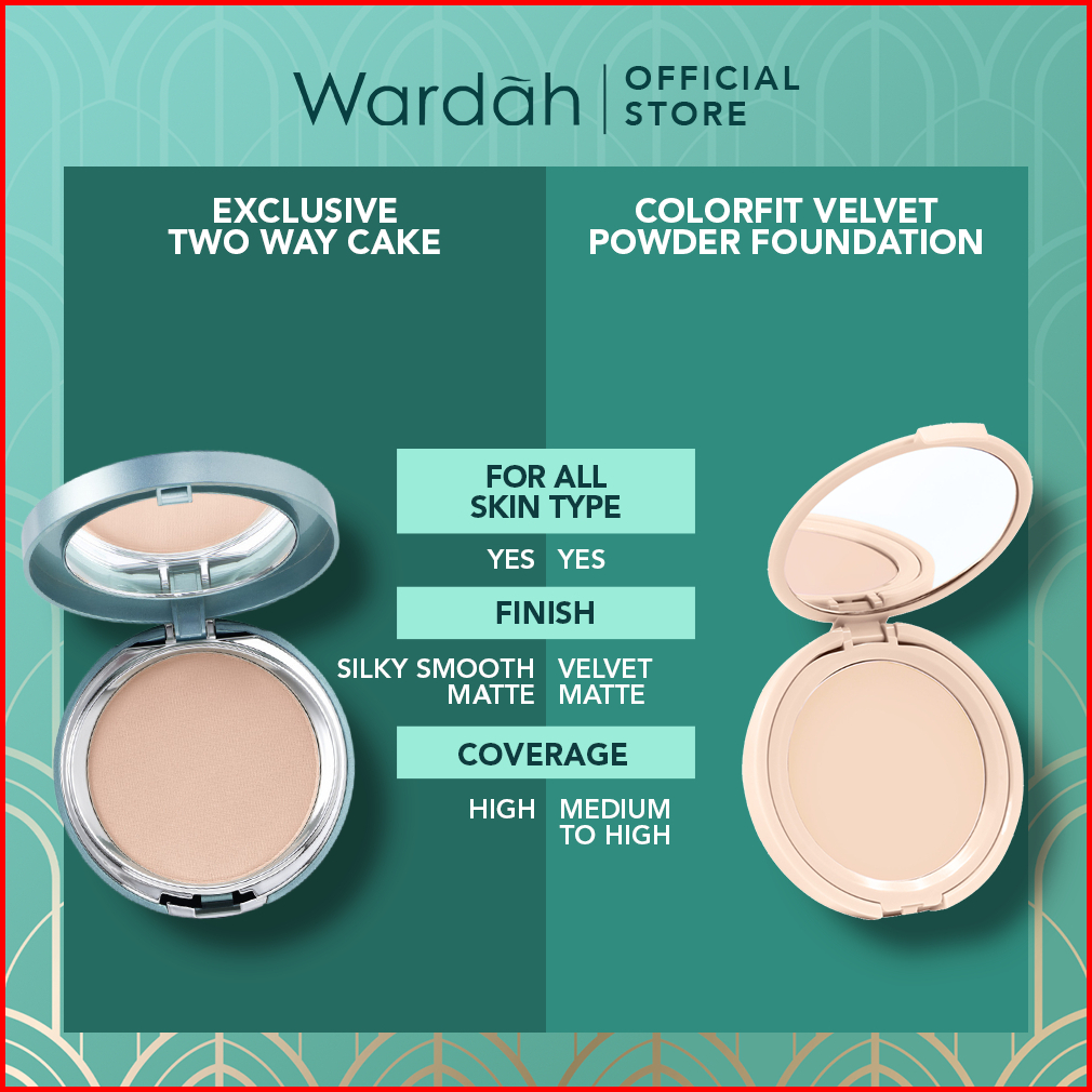 Wardah Exclusive Two Way Cake - Bedak Dengan Tingkat Coverage Tinggi Yang Halus Dan Tahan Lama - Long Lasting - Dilengka