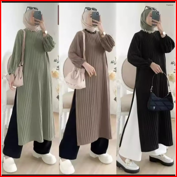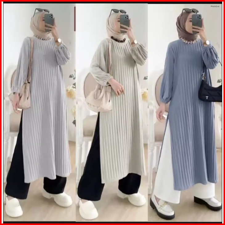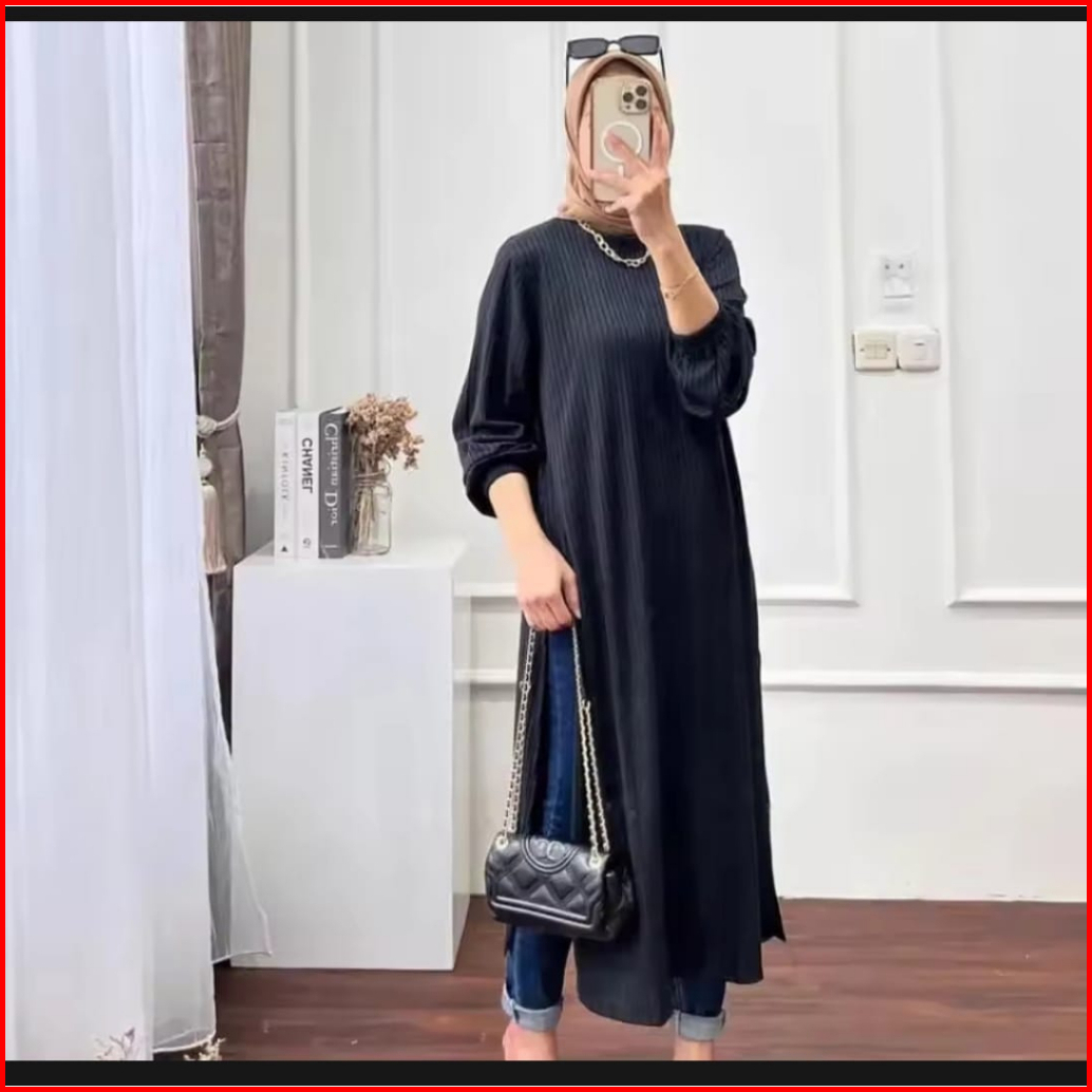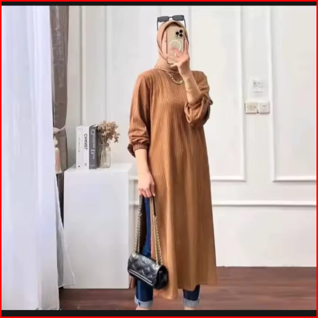 Long Tunik Kenit Hornet Premium Tebal Jumbo Xxl Lengan Karet