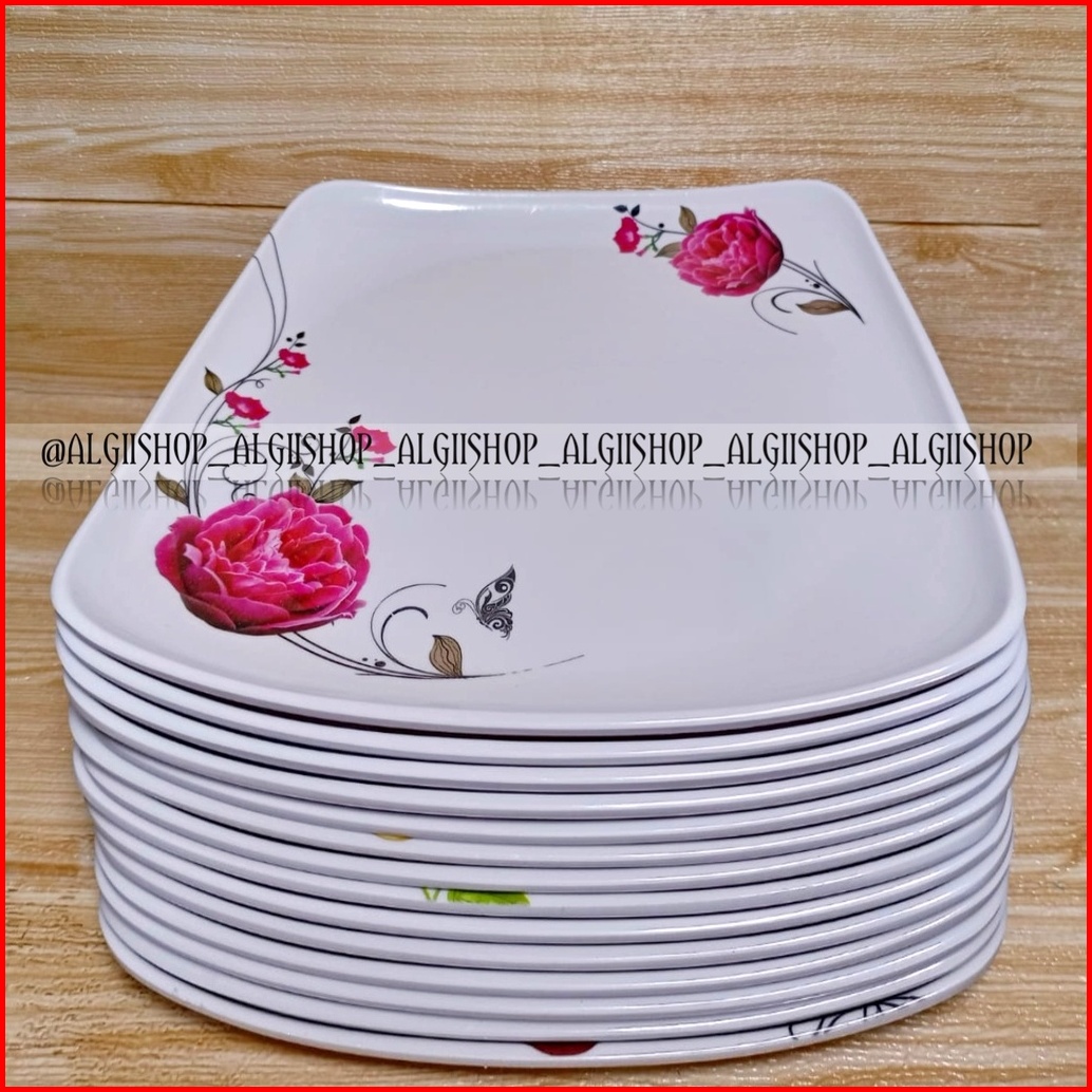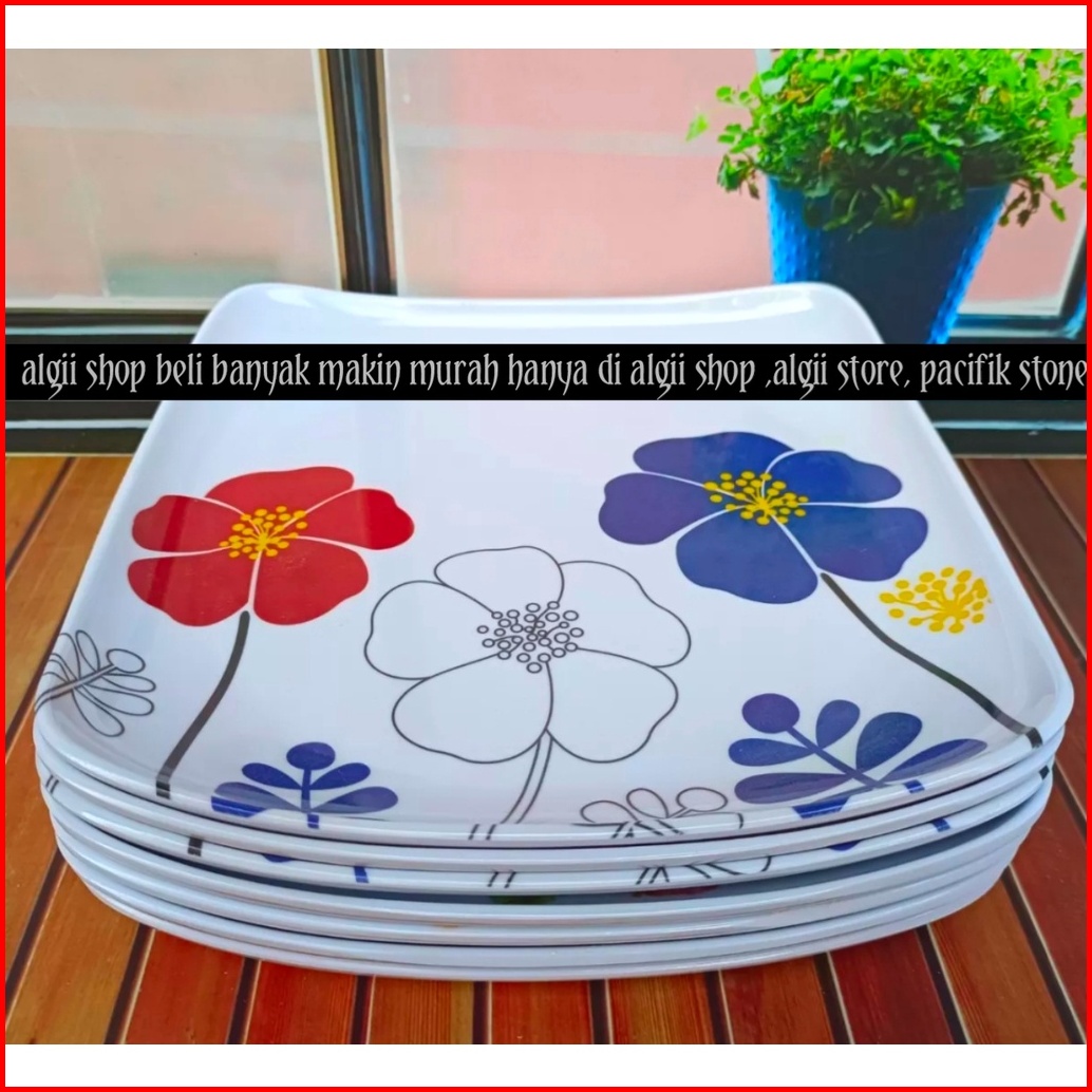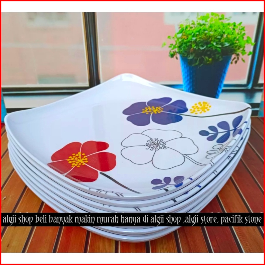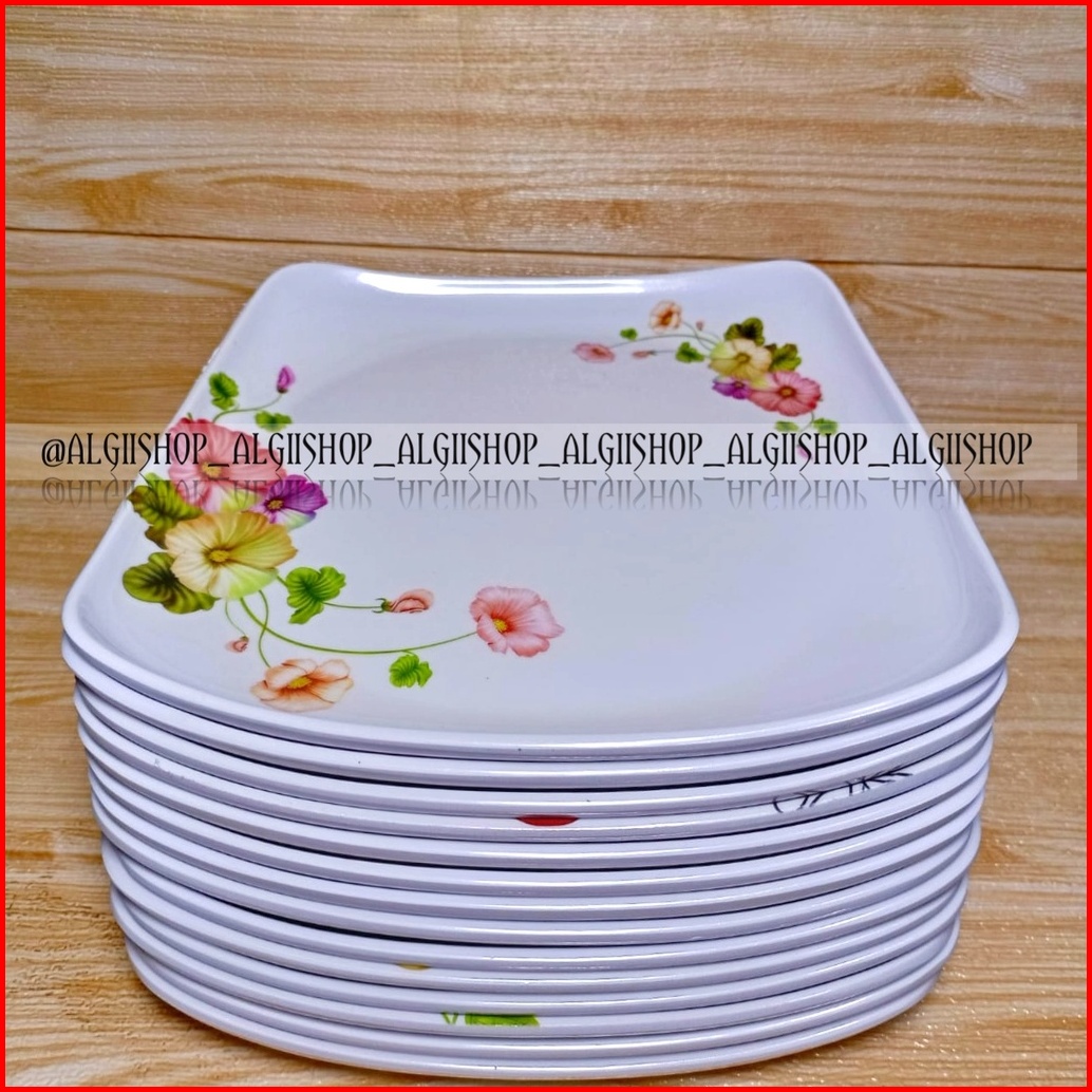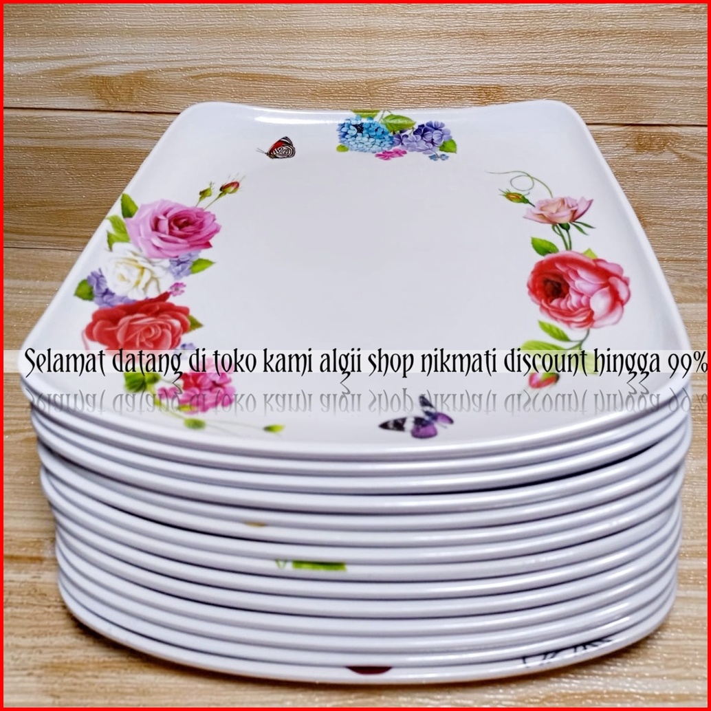 8pcs Piring Melamine Kotak Ceper Motif Kembang 9inc Terbaru Terlaris