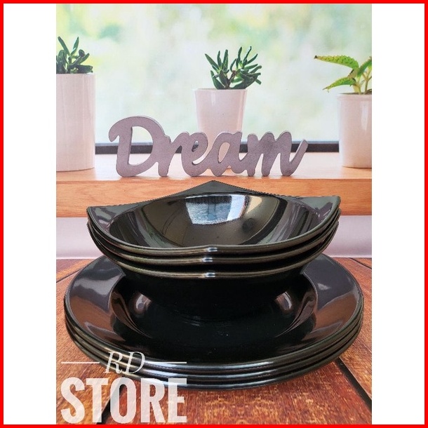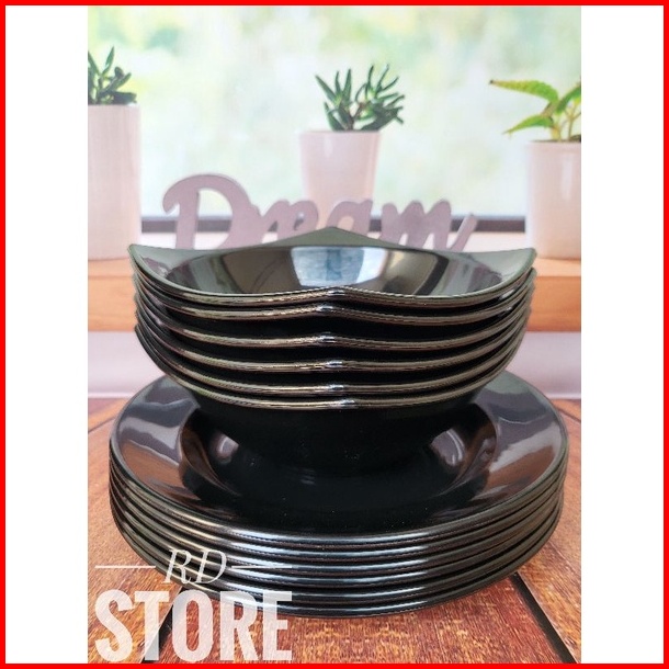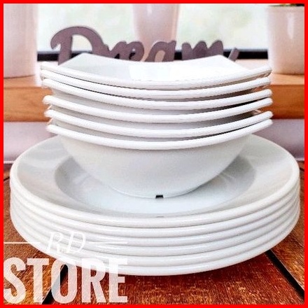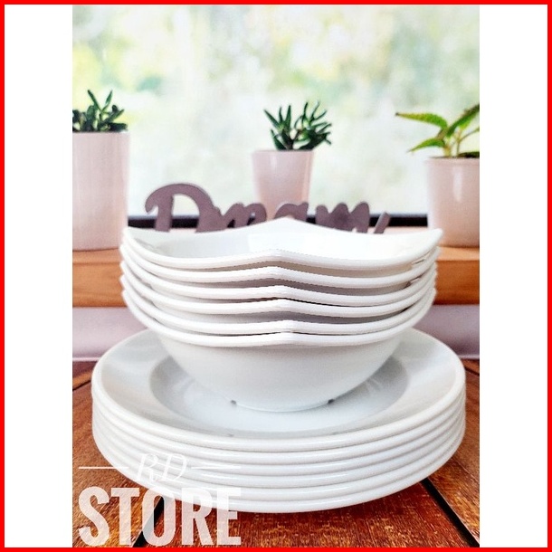 Promo 12.pcs Isi 6.piring 6.mangkok Melamine Polos