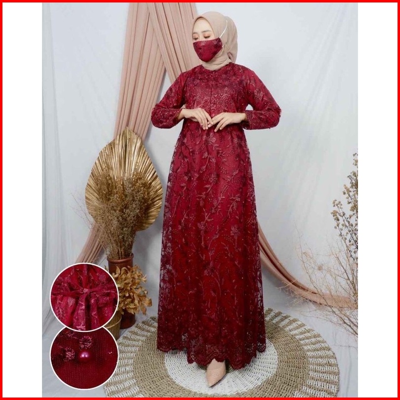 Gamis Busui Namira Tile Full Brukat Mutiara Size S M L Xl Xxl 3l Dress Kondangan Gamis Brukat Tile Brukat Mutiara Gamis