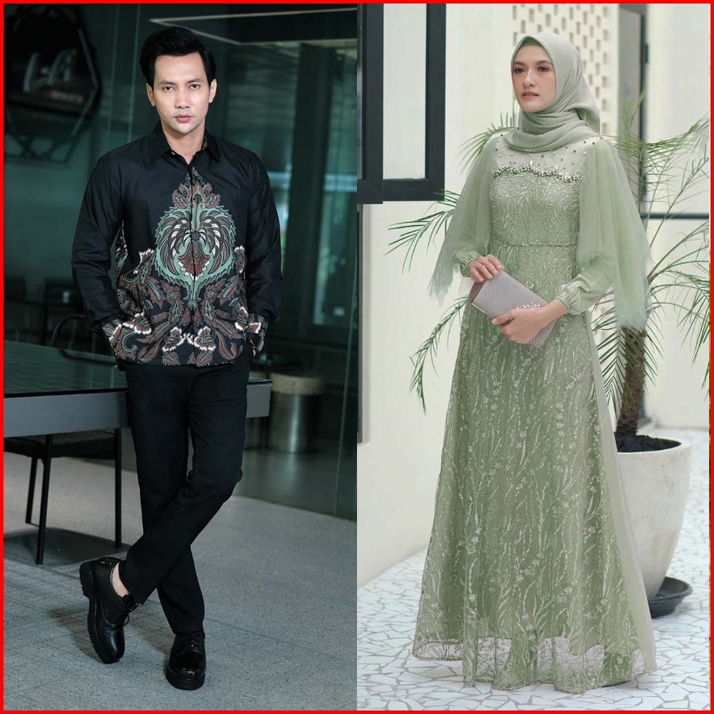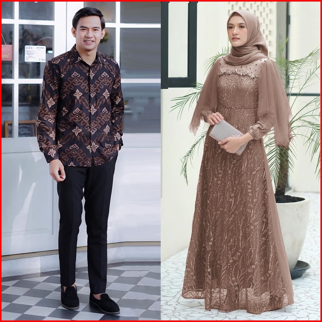Baju Batik Couple Gamis Brukat Batik Couple Baju Tunangan - Gamis Brukat Couple - Batik Couple Outfit Kondangan Kekinian