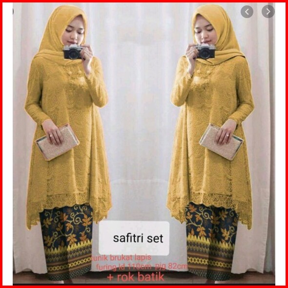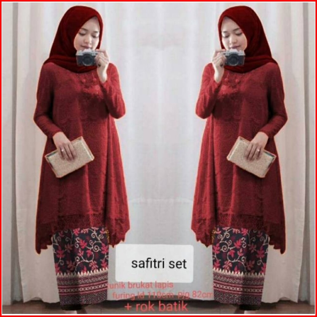 S M L Xl Xxl Set Safitri Kebaya Premium Rok Batik Brukat Seragam Kondangan Wisuda