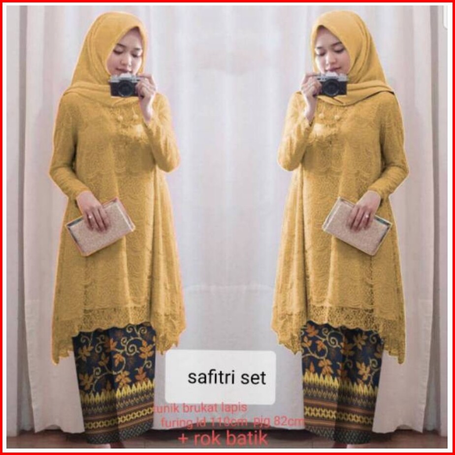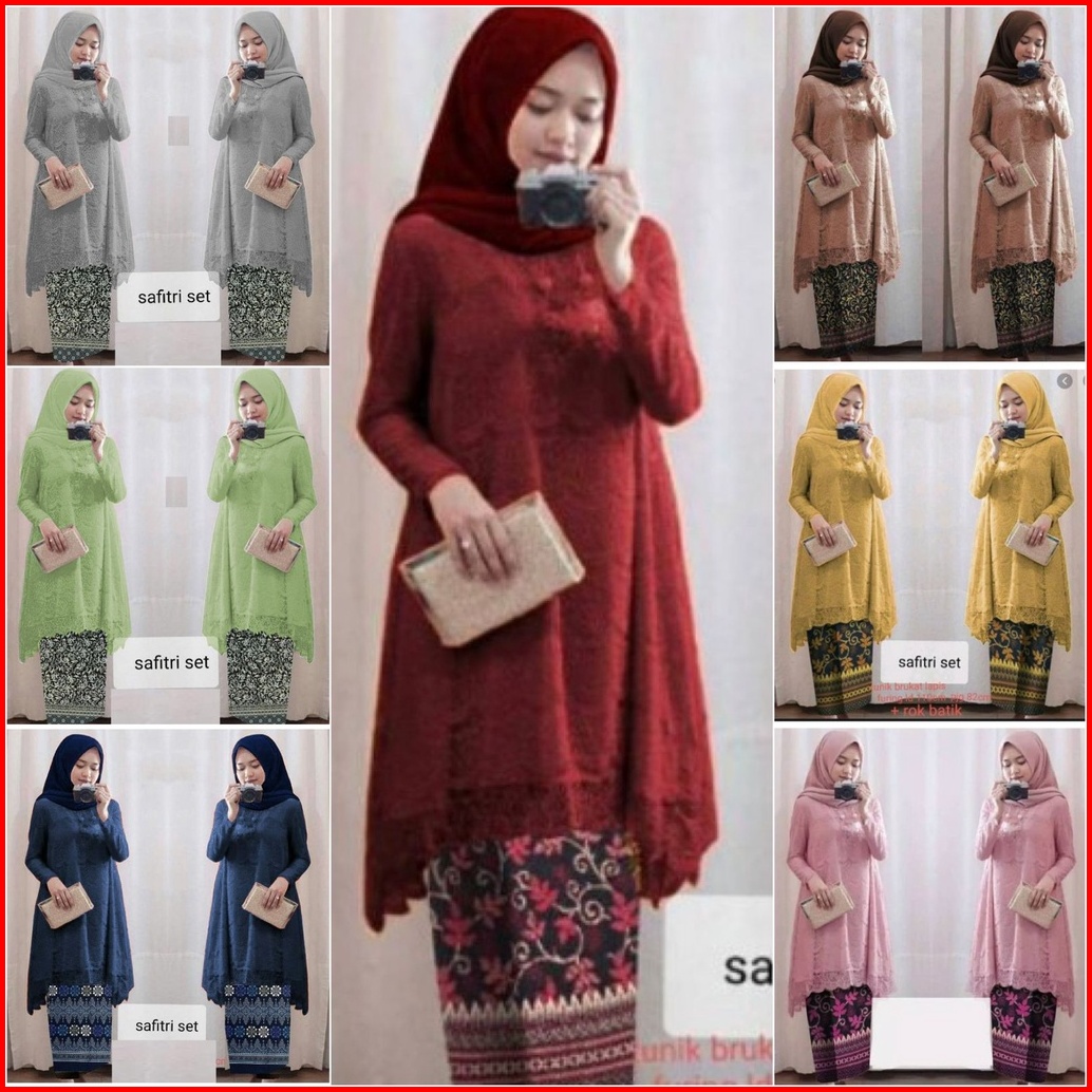 S M L Xl Xxl Set Safitri Kebaya Adelia Premium Rok Batik Brukat Tebal Real Pict