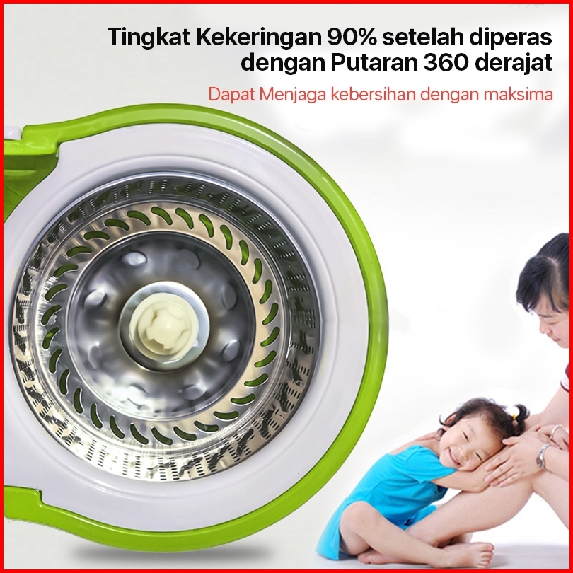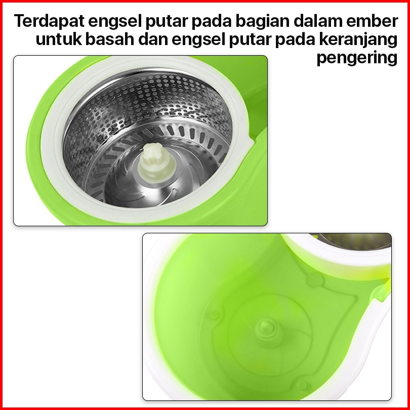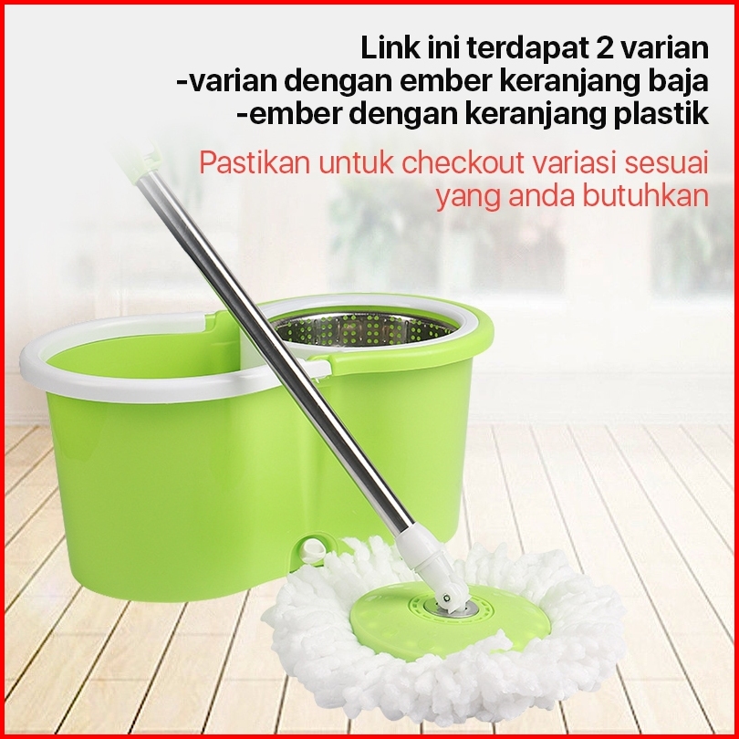 Set Alat Pel Lantai Stainless Super Mop Dengan Ember Pencuci Putar Hand Preassure Rotary Mop 360