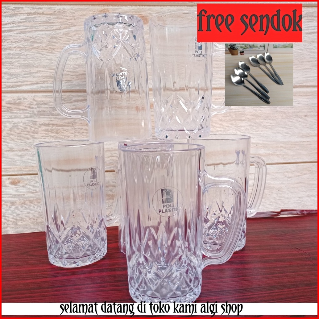 Promo Gratis 6 Pcs Gelas Bening Plastik Mika Gratis 2pcs Sendok Tebal Tahan Banting Dan Tahan Panas Gelas Es Teh Manis