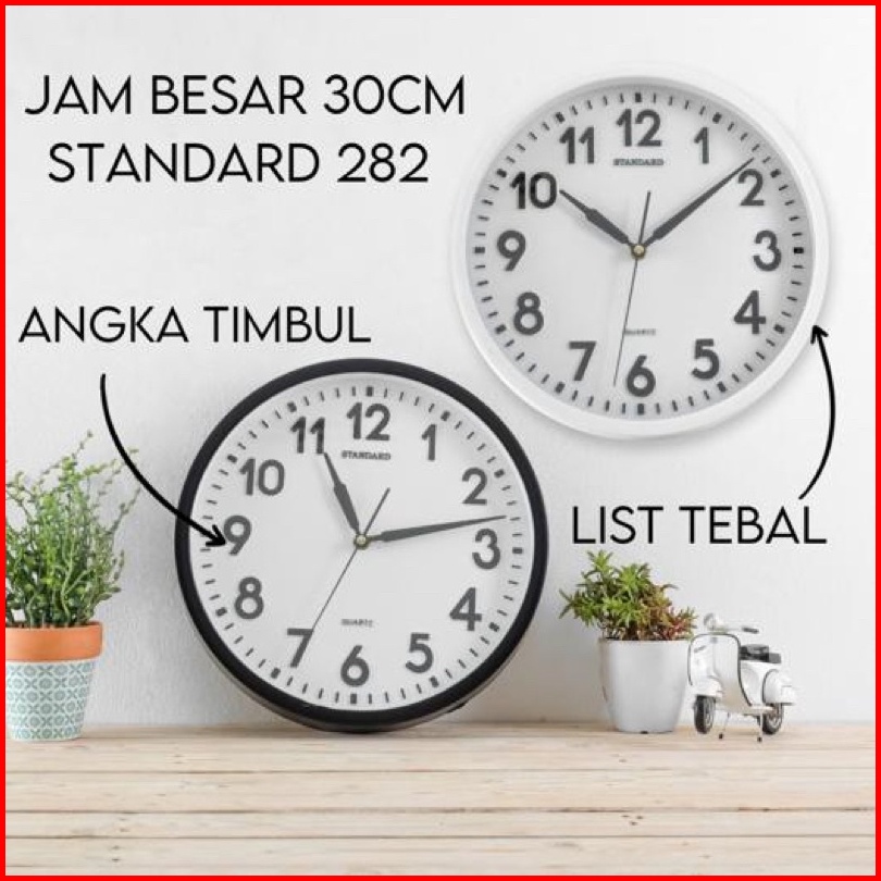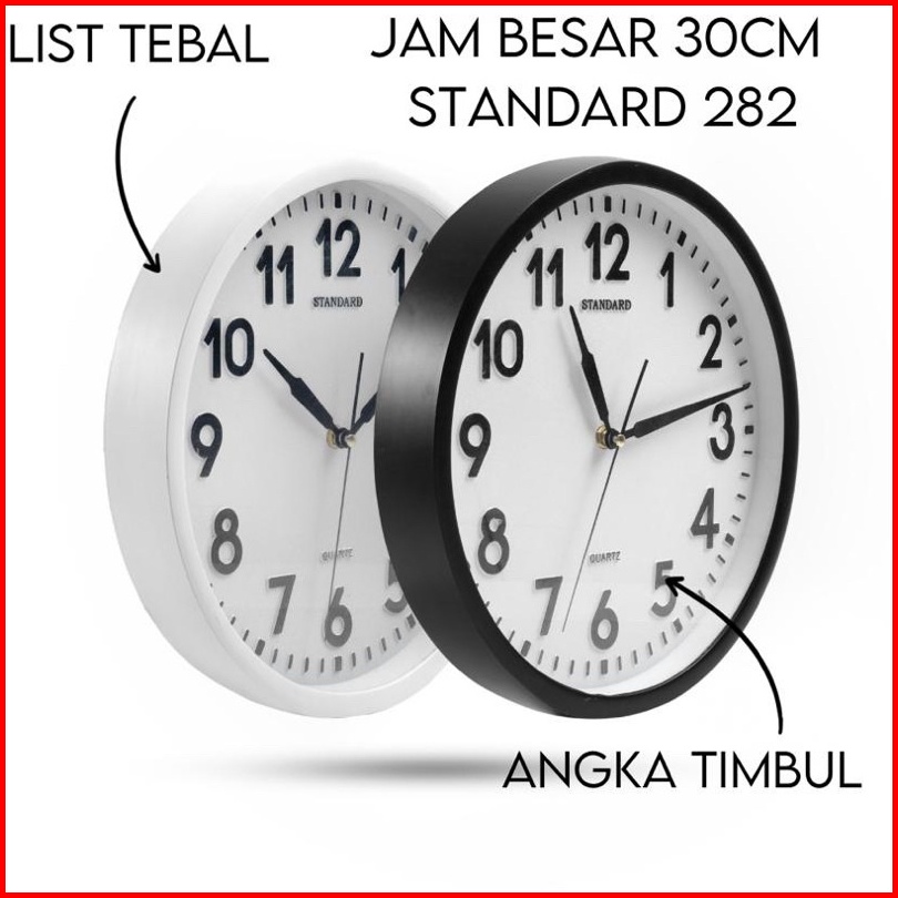 Jam Dinding Standard 282 Diameter 30cm Tebal Angka Timbul Minimalis Murah