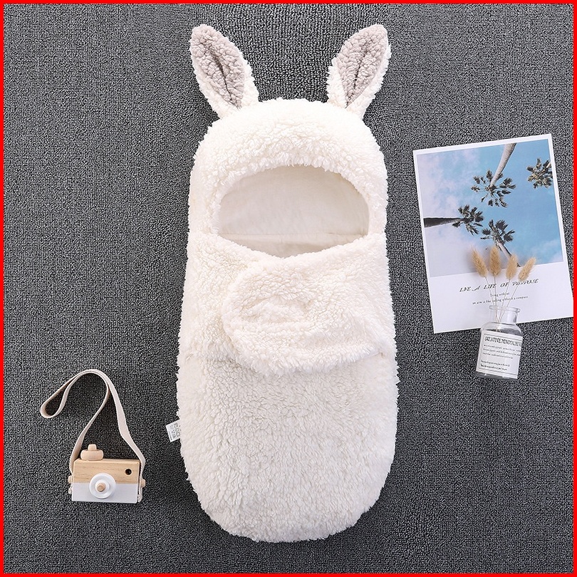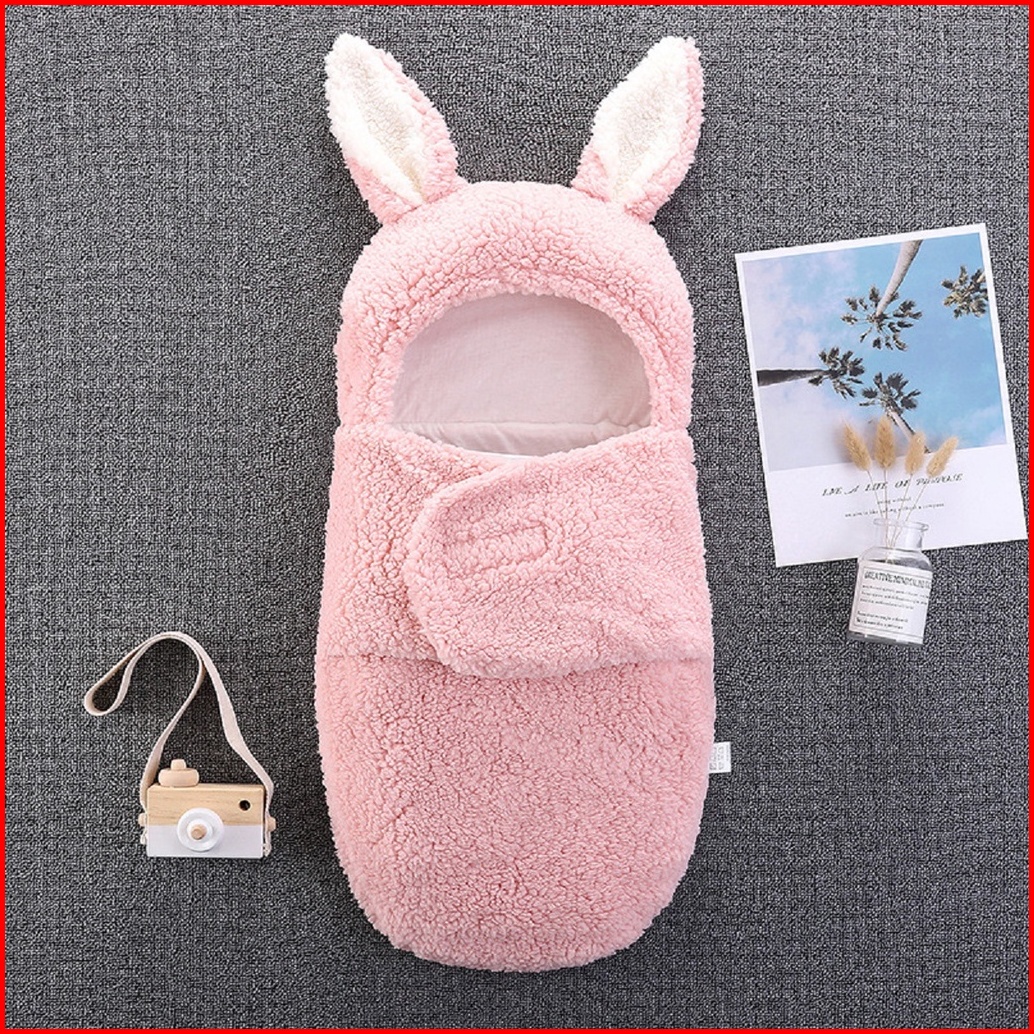 Selimut Bedong Bayi Praktis Lucu 0-1 Tahun Bahan Bulu Domba Motif Kelinci