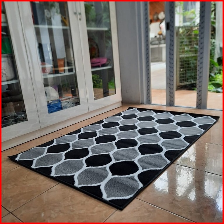 Maroc Karpet Lantai 100x150 Black On Grey Bog09 Karpet Permadani Bulu Tebal