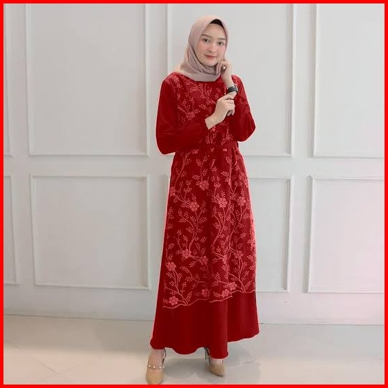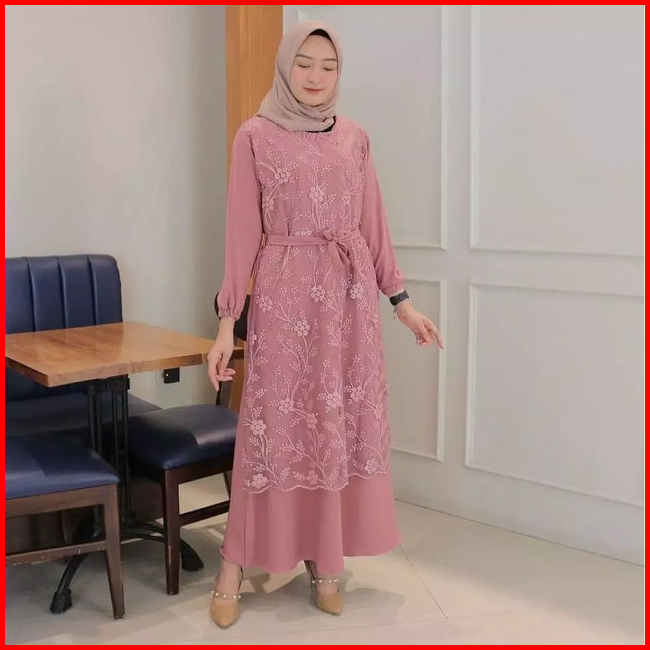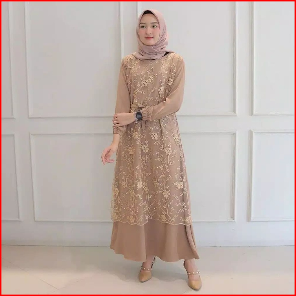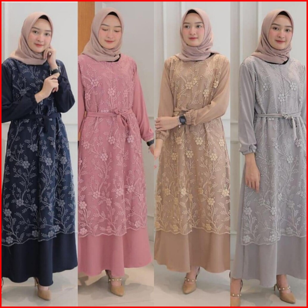 Alma Dress Gamis Pesta Kondangan Mix -brukat Bunga