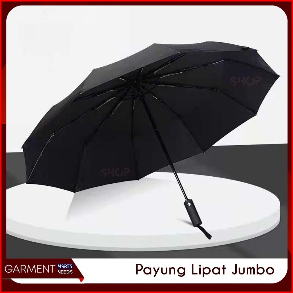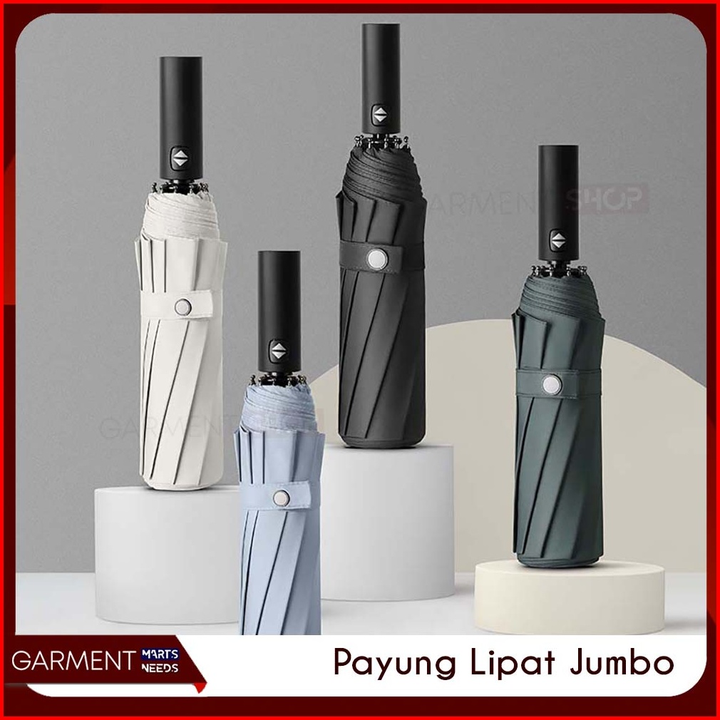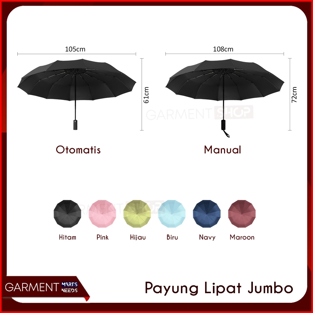 Payung Lipat Jumbo 10 Jari Travel Folding Umbrella Portable Otomatis Manual Kuat Kokoh Warna Warni