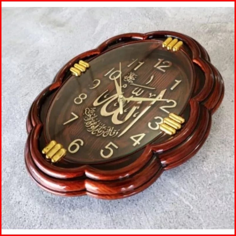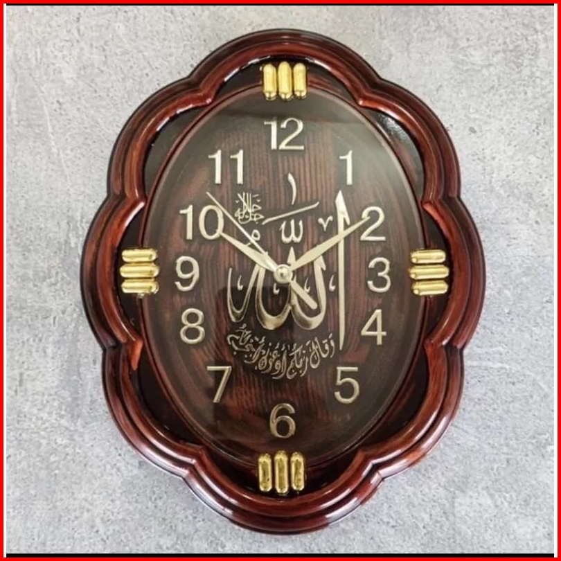 Jam Dinding Nikko Nk-8196 Kaligrafi Allah Coklat Kayu Wall Clock Minimalis Diameter 26 X20 5cm