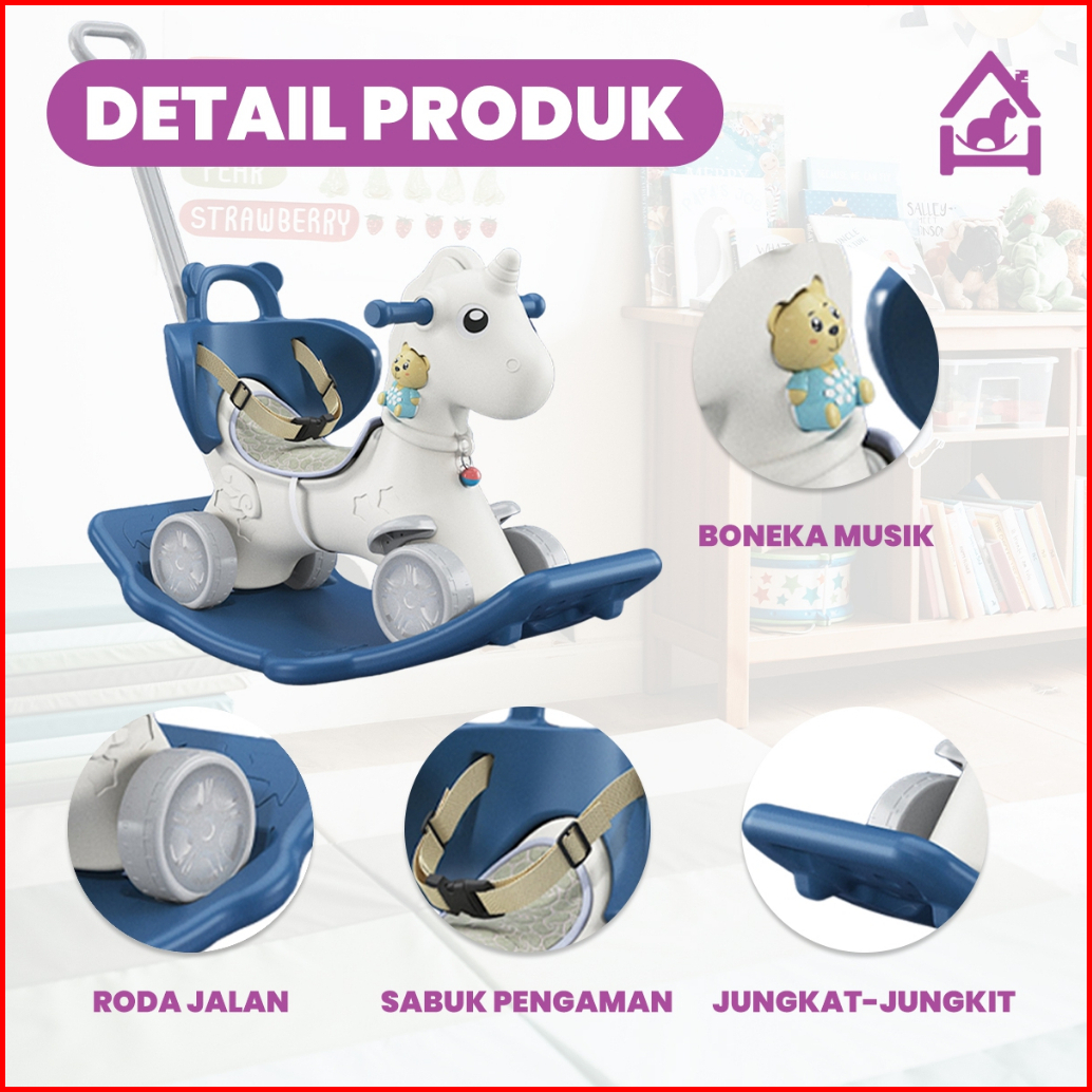 Kereta Kuda Goyang Ayunan Mainan Dorong Kuda Kudaan Anak Kualitas Premium Dino