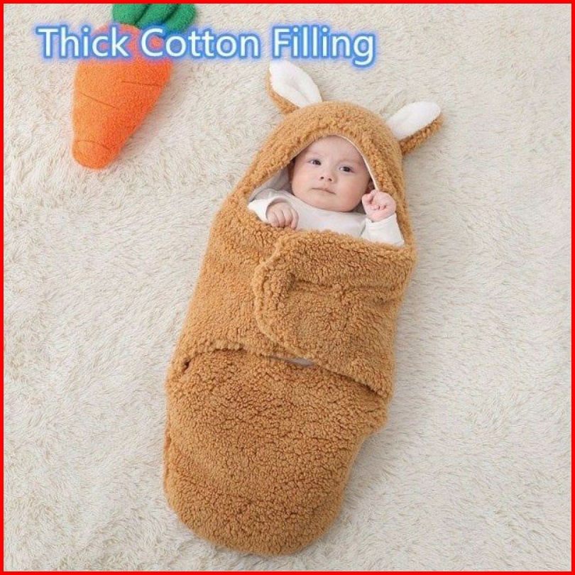 Selimut Bedong Bayi Bulu Tebal Karakter Kelinci Newborn Premium
