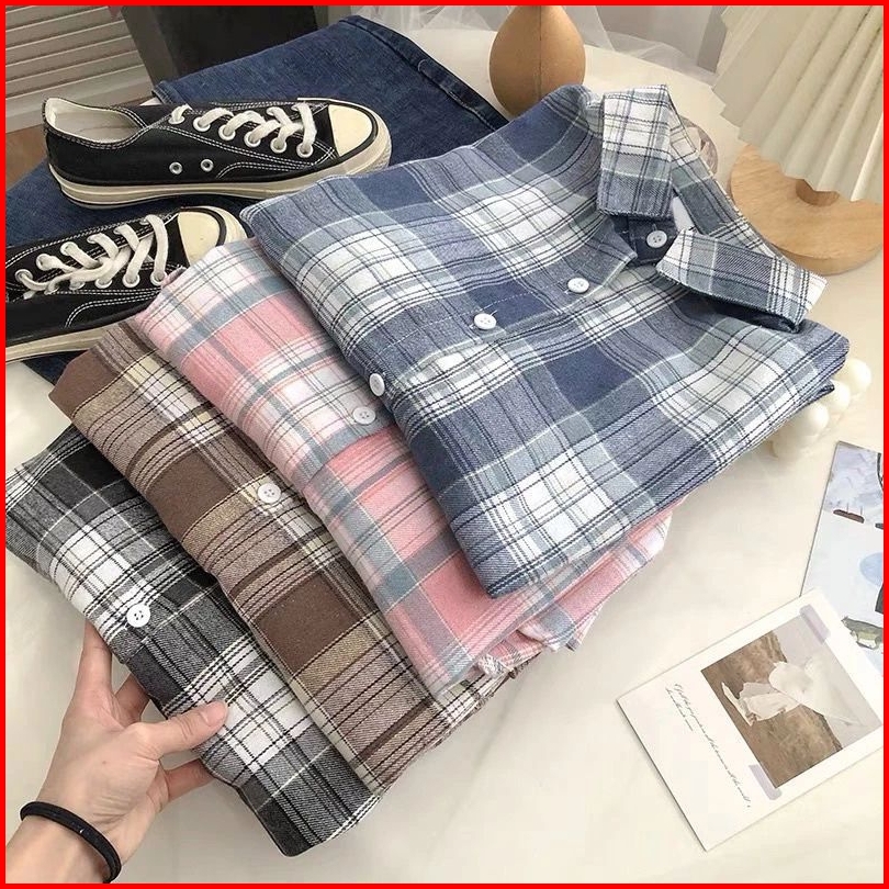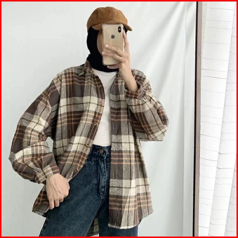 Kemeja Flanel Wanita Lengan Panjang Motif Best Seller