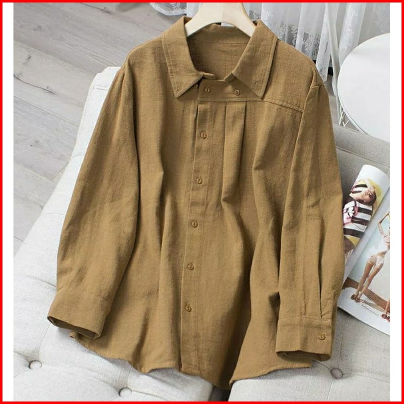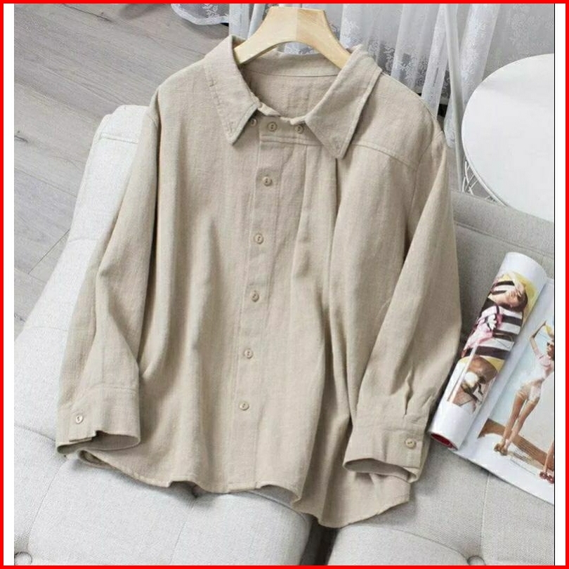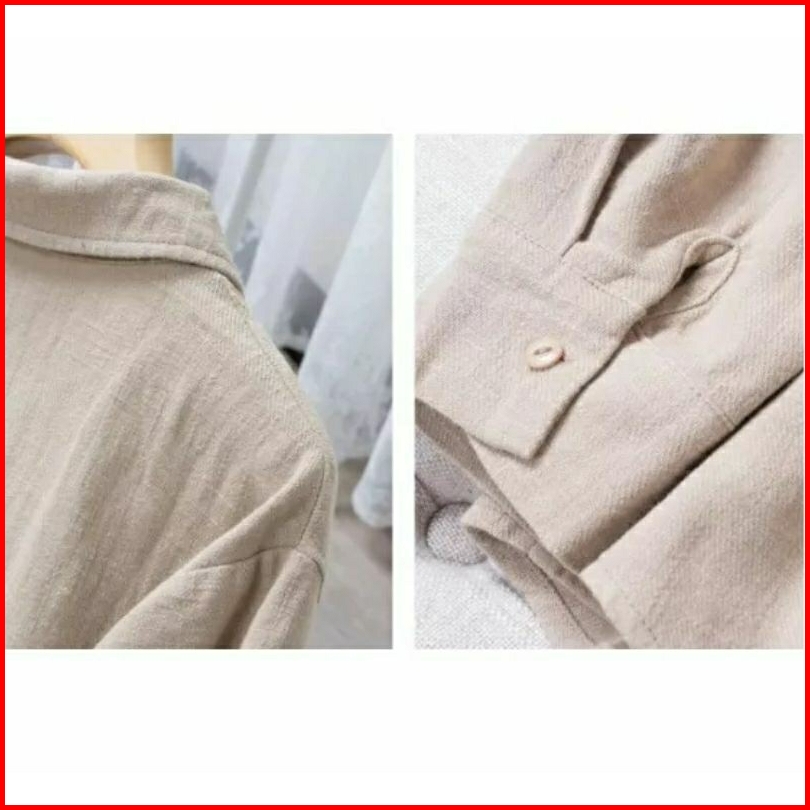 Atasan Wanita Kemeja Linen Lengan Panjang Premium