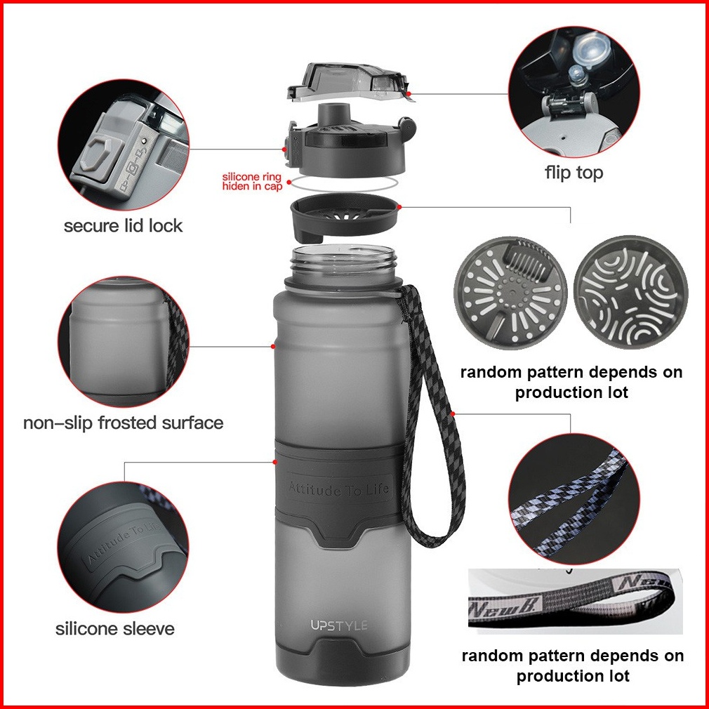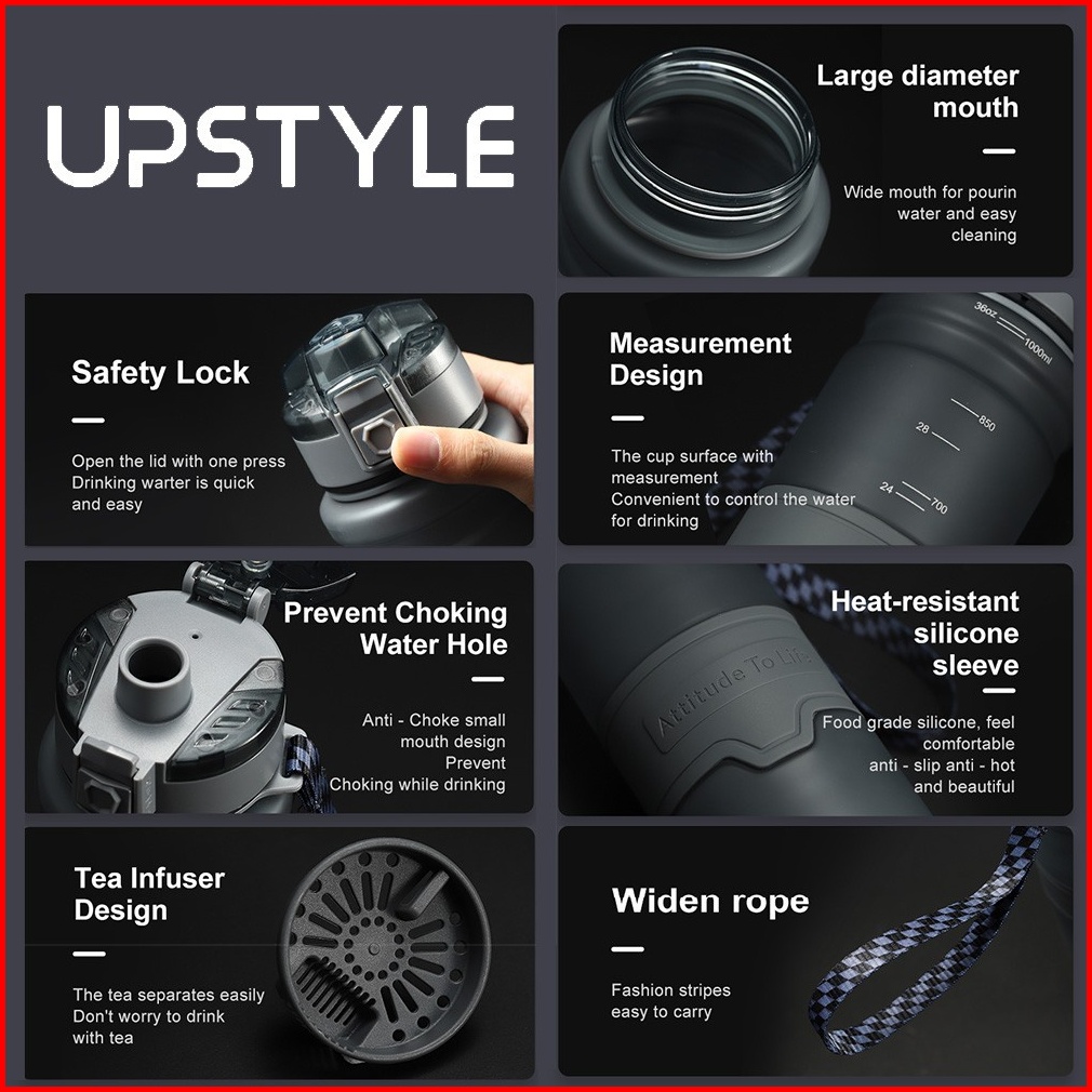 1000ml Botol Minum Upstyle Premium Sport Water Bottle Frosted Olahraga Sedang Usa Tritan Portable Cup Bpa Free