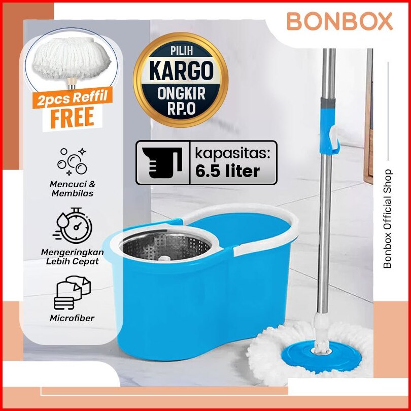 Alat Pel Lantai Ember 2 In 1 Kain Fiber Dengan Ember Spin Mop Mencuci Dan Membilas Alat Pembersih Lantai Bct3616b