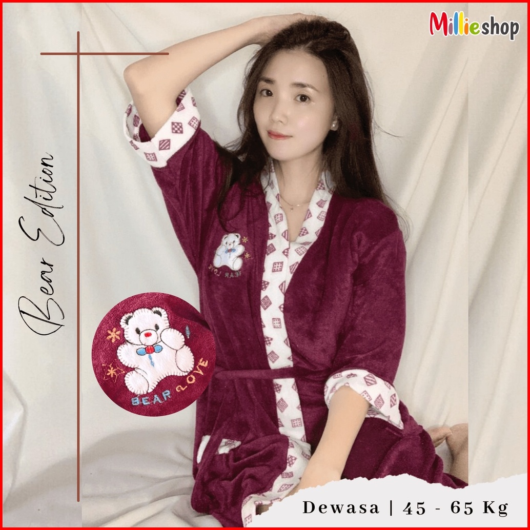 Handuk Kimono Dewasa 45 - 65 Kg Motif Bear Jubah Mandi Baju Handuk Millieshop