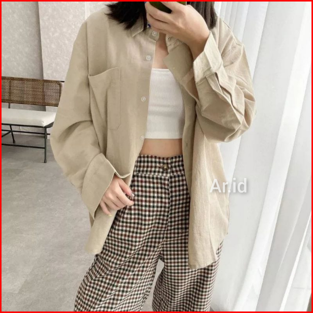 Kemeja Oversize Linen Wanita Atasan Wanita Lengan Panjang Olivia Shirt Kemeja Polos Wanita