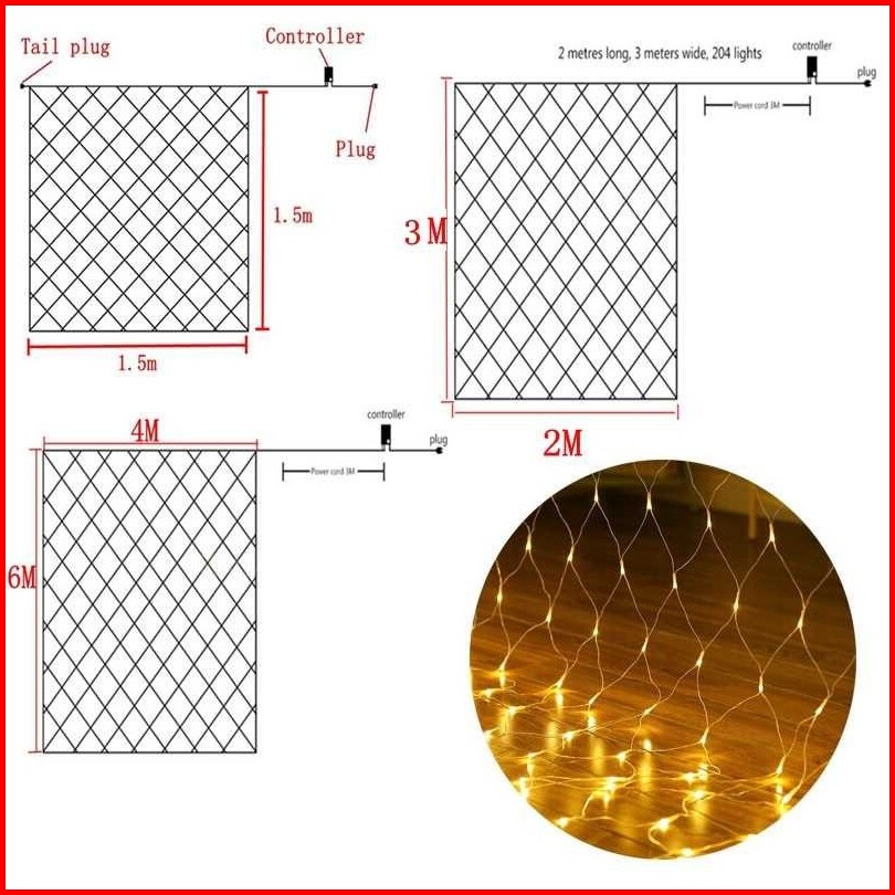 Lampu Natal Jala Led Warm White Dan White Tumblr Light Jala Dekorasi Taman Cafe Lampu Jaring Pesta