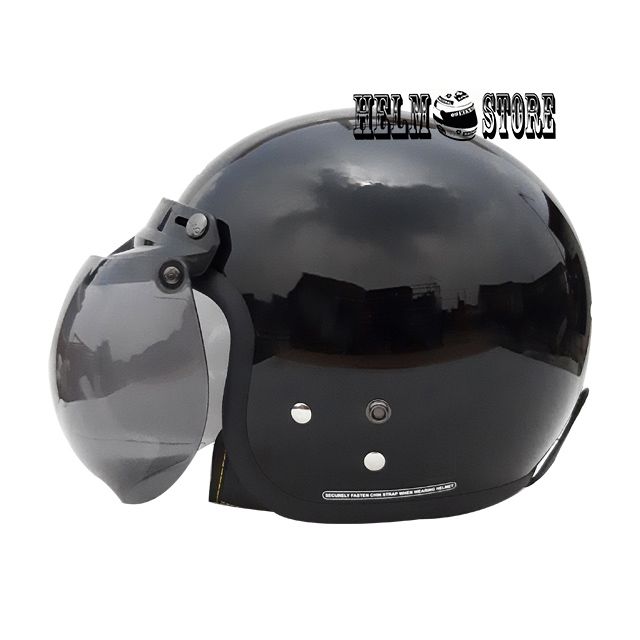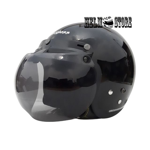 HELM CARGLOSS CFM CARGLOSS RETRO SOLID BLACK METALIC KACA CEMBUNG HELMET BOGO RETRO ORIGINAL