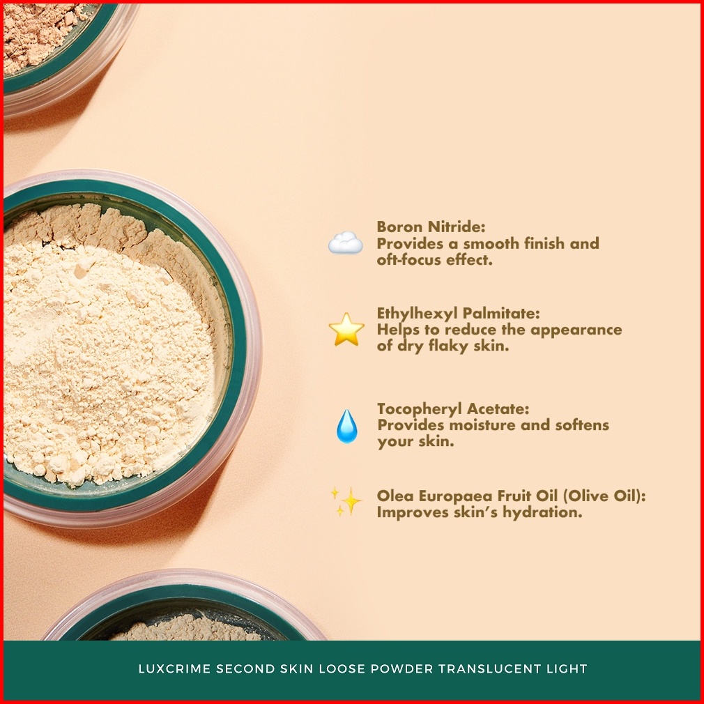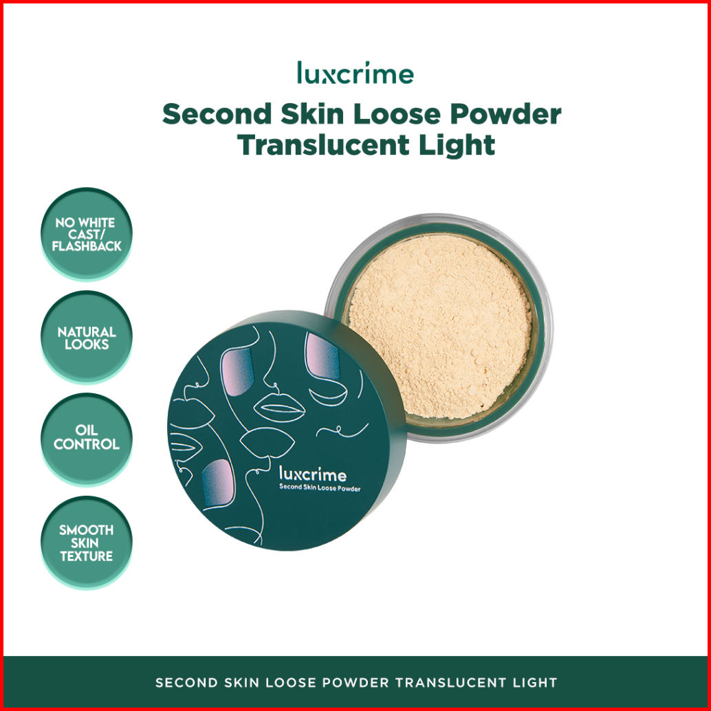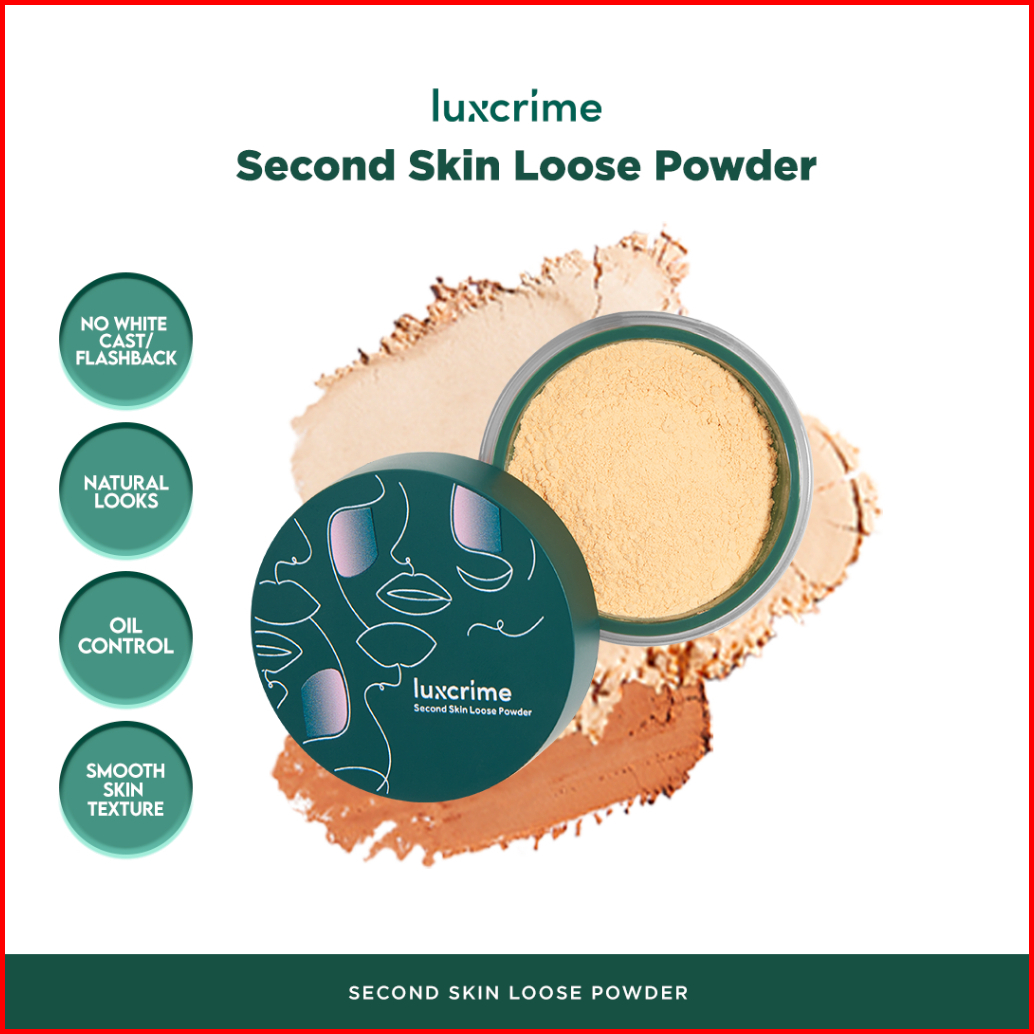 Luxcrime Second Skin Loose Powder - Bedak Tabur Mencerahkan Menghaluskan Makeup Tahan Lama Dengan Hasil Akhir Natural