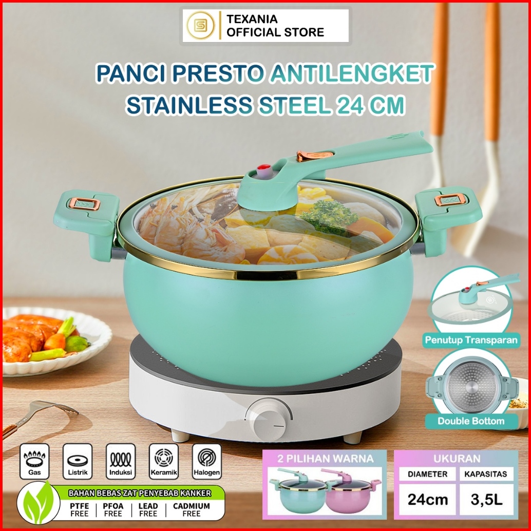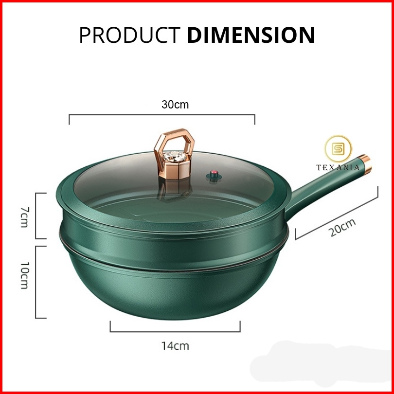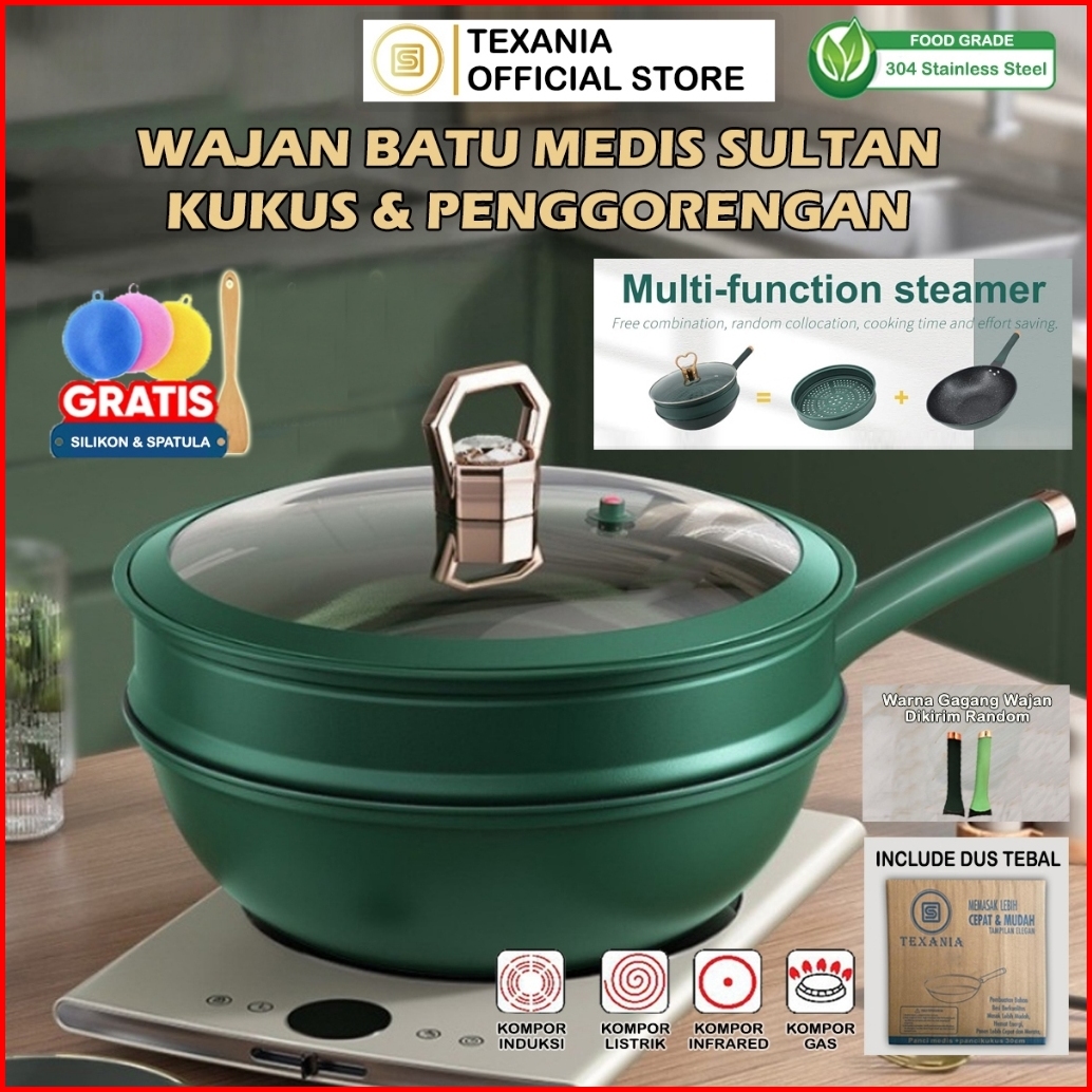 9.9 Sale Texania Panci Penggorengan Steamer 28cm Panci Kukus Serbaguna Wajan Batu Medis Anti Lengket Free Bonus Spatula