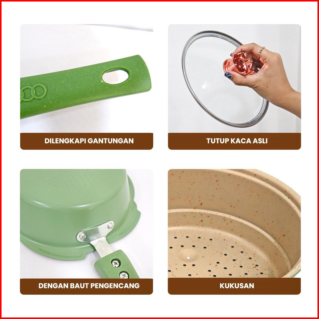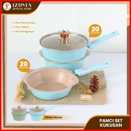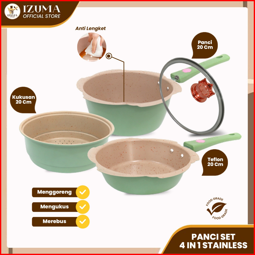 Izuma Panci Mpasi Set Bayi 4 In 1 Kukusan Granit Anti Lengket Wajan Keramik Food Grade Aman Mpasi