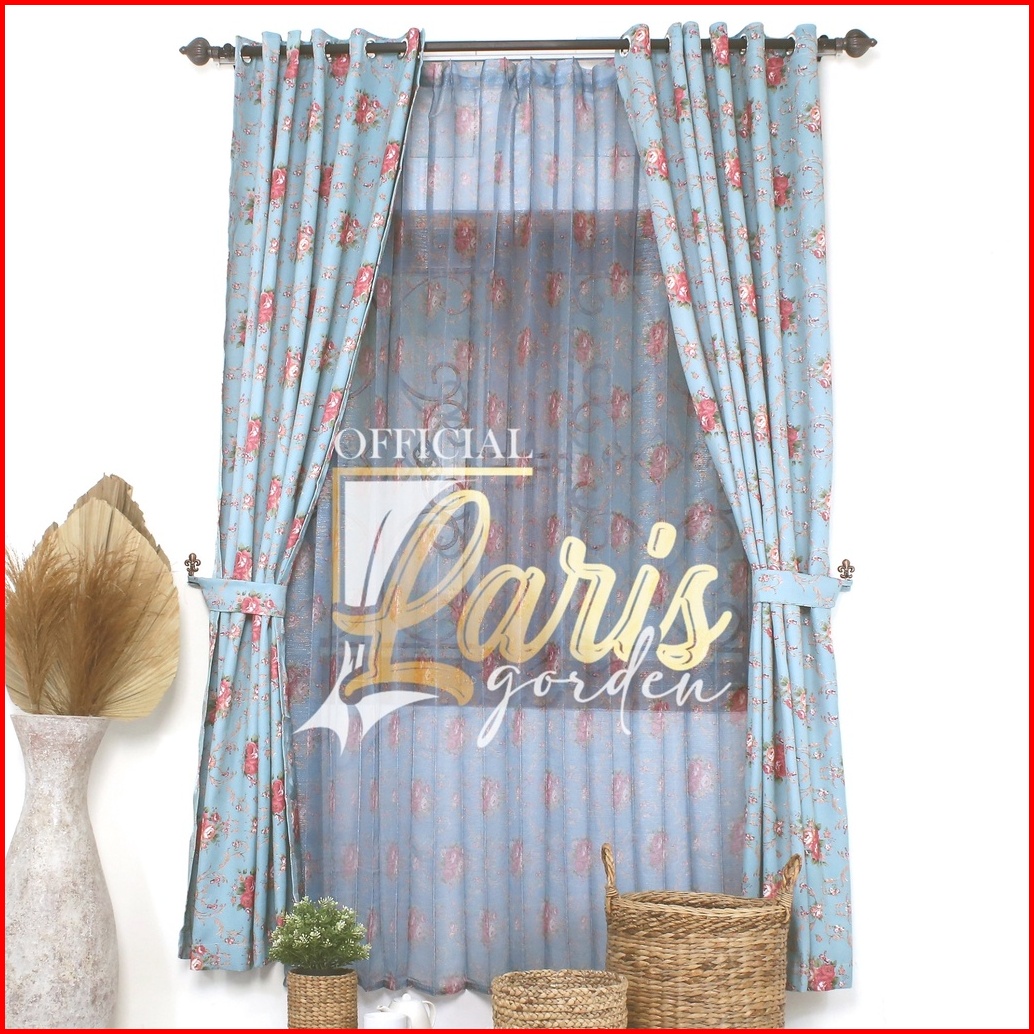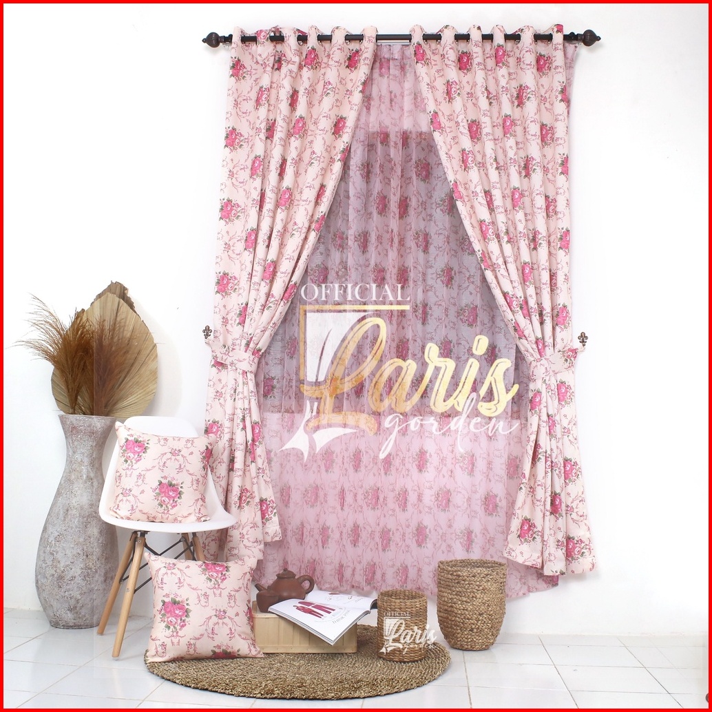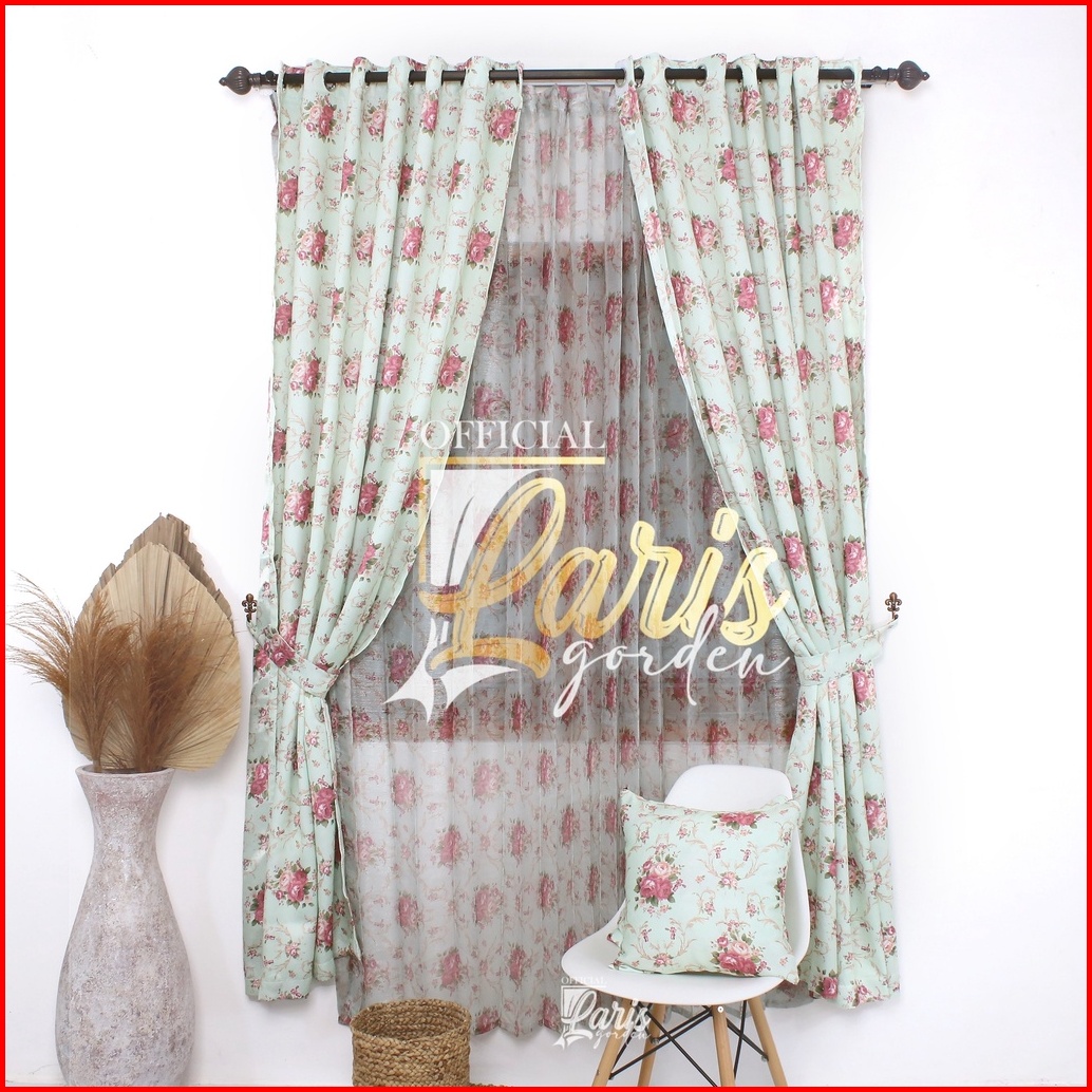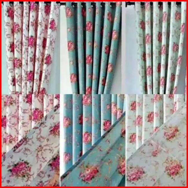 Gorden Jendela Shaby Motip Bunga Sakura Bolak Balik Bahan Blacokut Grade A Hordeng Jendela Minimalis