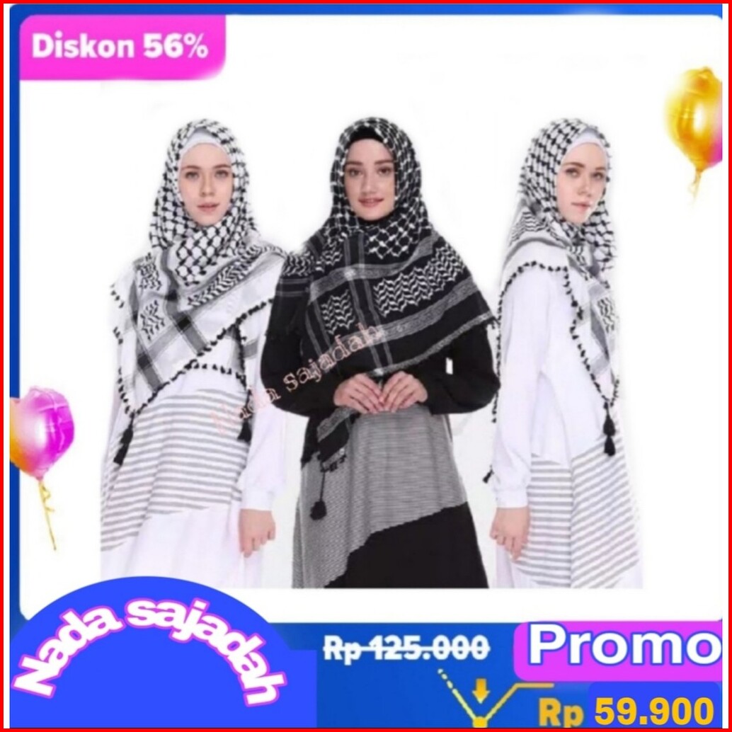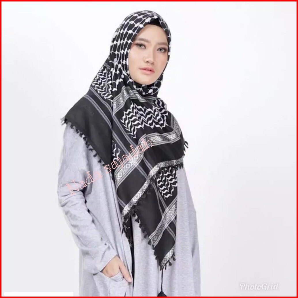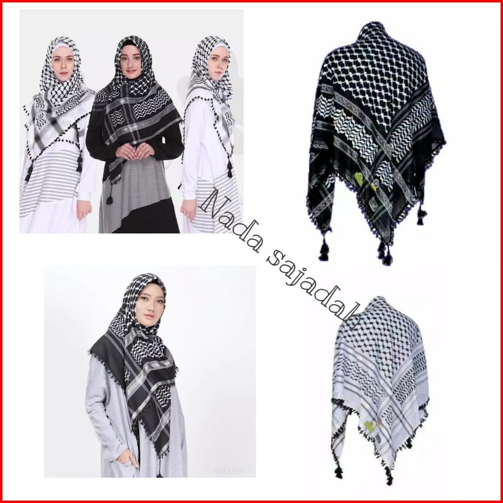 Kerudung Sorban Palestina - Putih Hitam Viral Best Quality