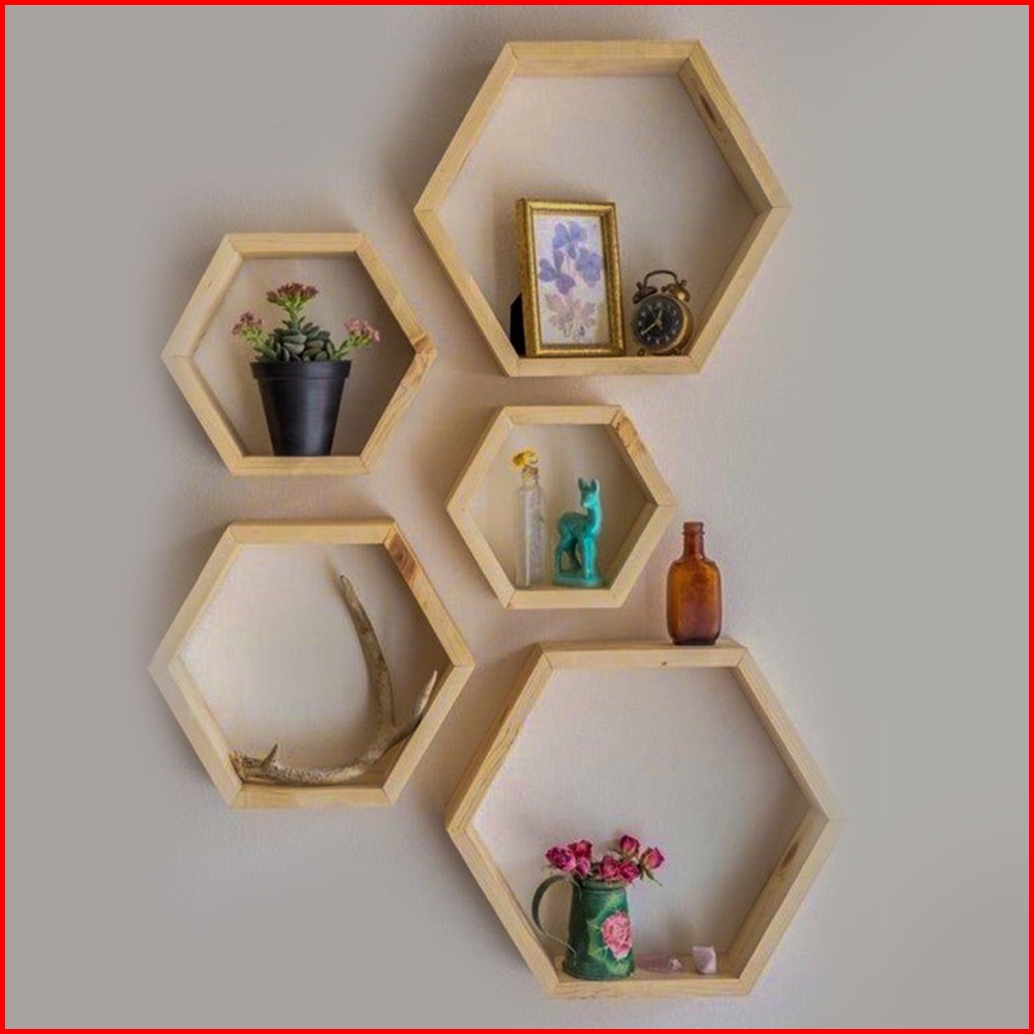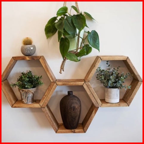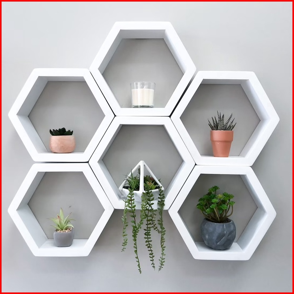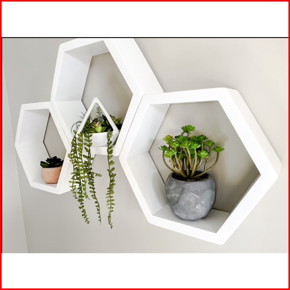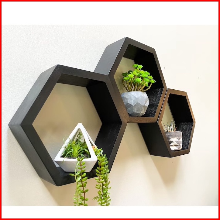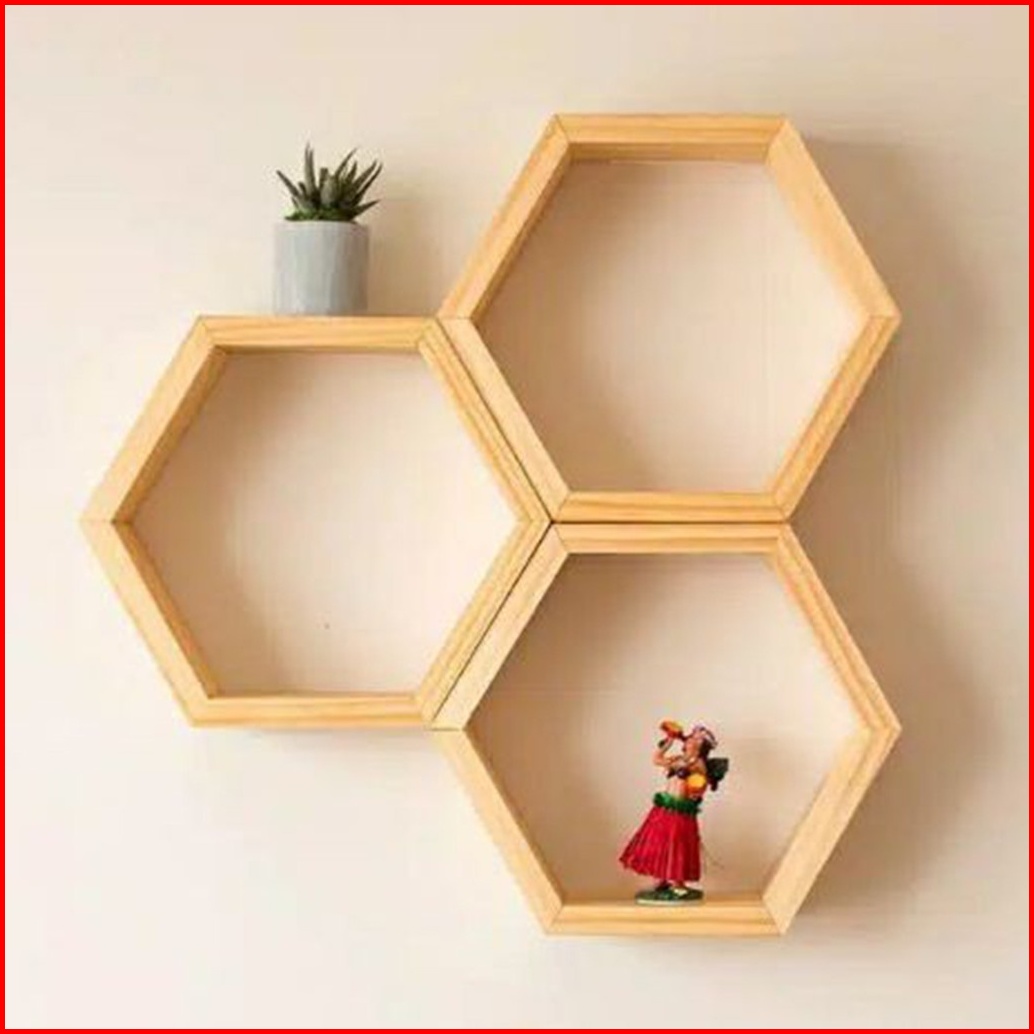 Dekorasi Hiasan 1 Set 3 Pcs Rak Kayu Hexagonal Hiasan Dinding Heksagonal Dekorasi Rumah Kantor Termurah Pajangan Minimal