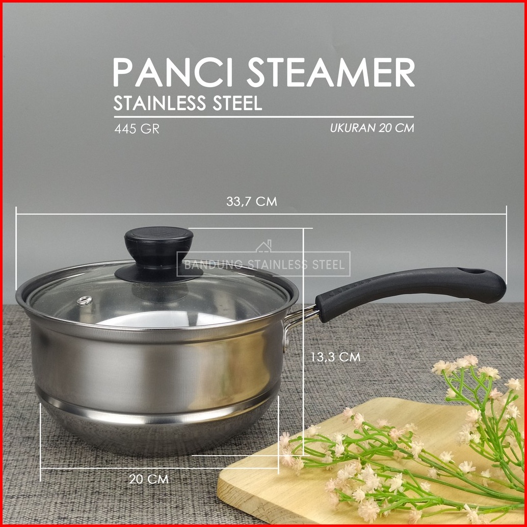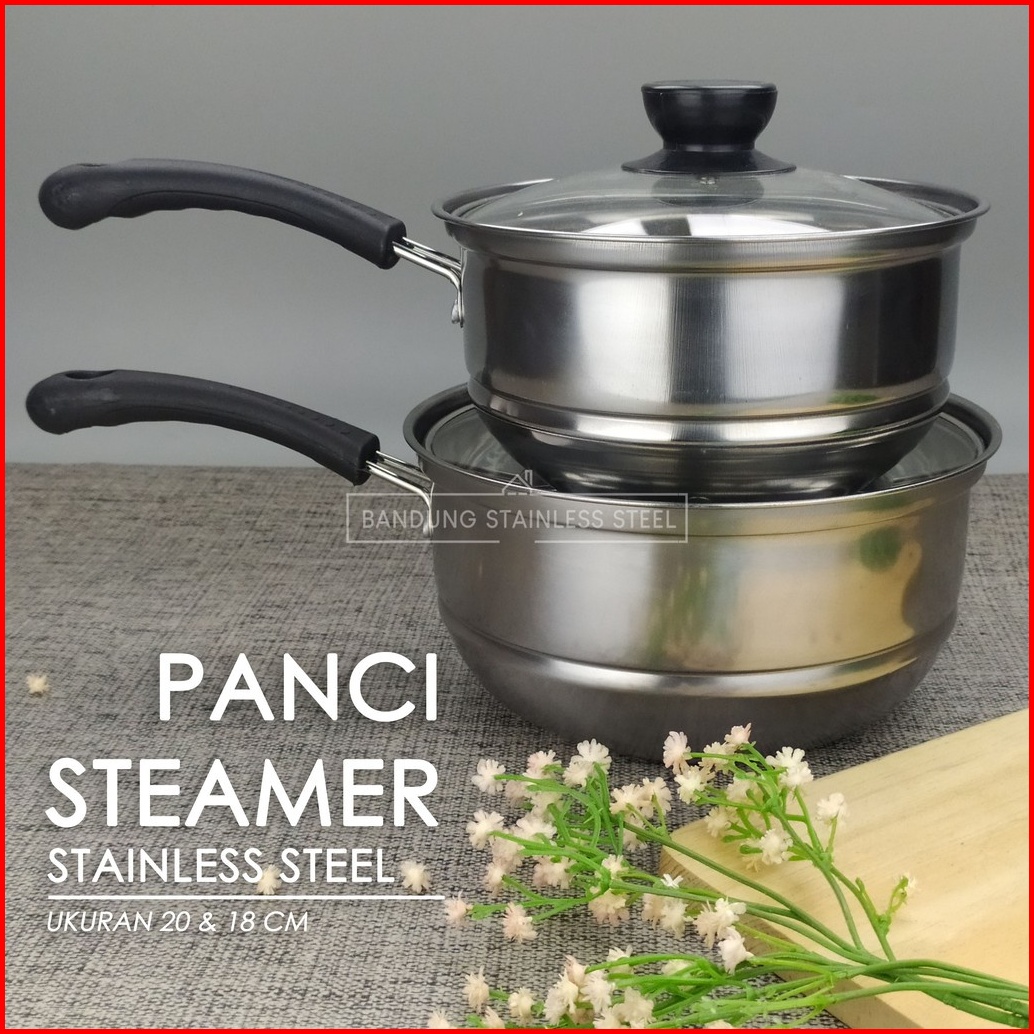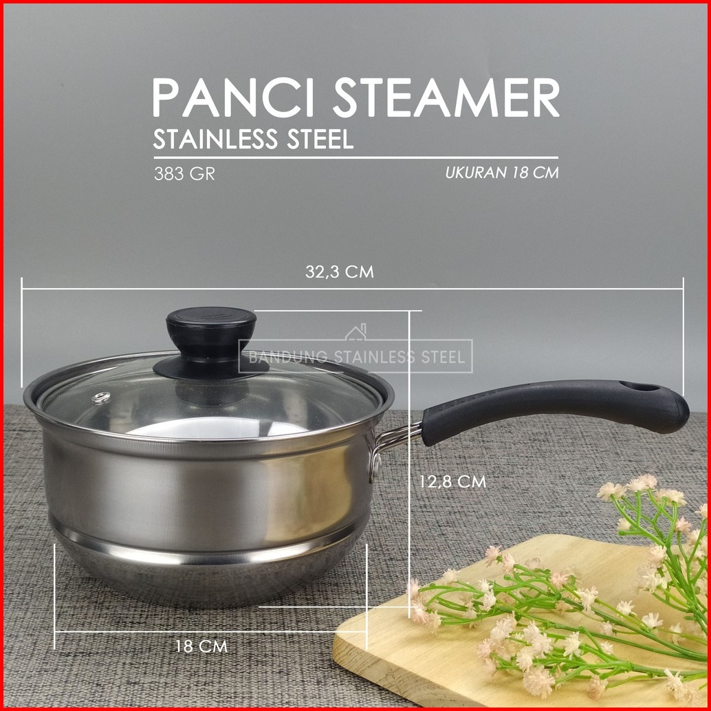 Promo Panci Kukus Steamer 18cm 20cm Milk Pot Stainless Steel Tutup Kaca Murah
